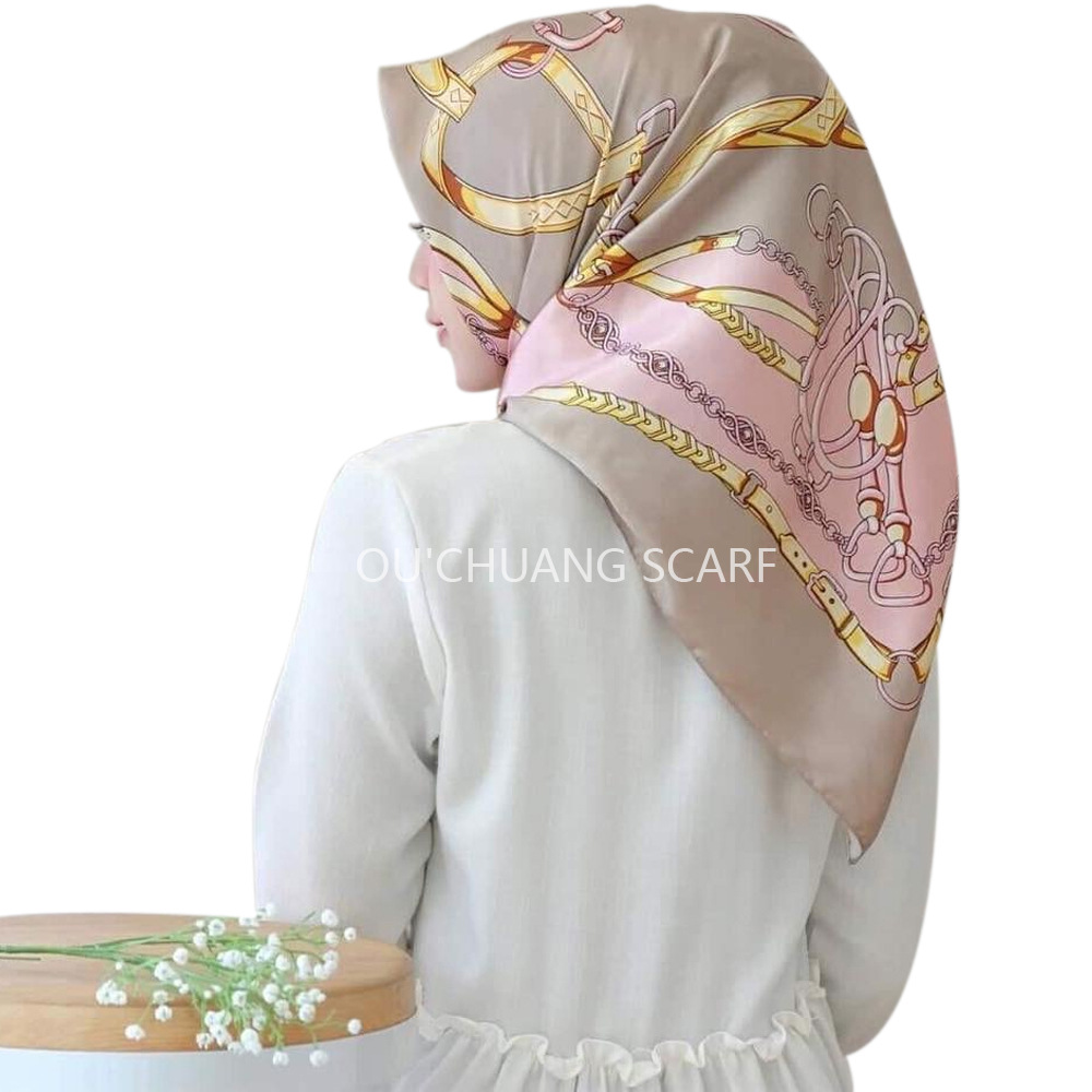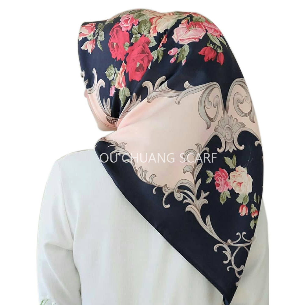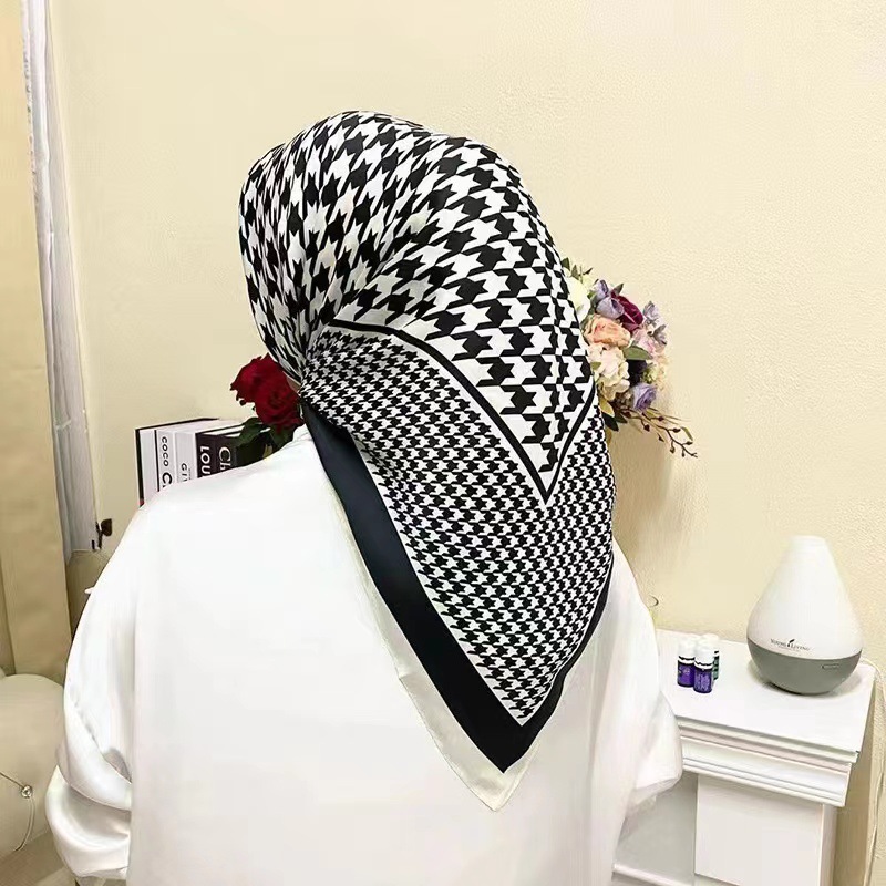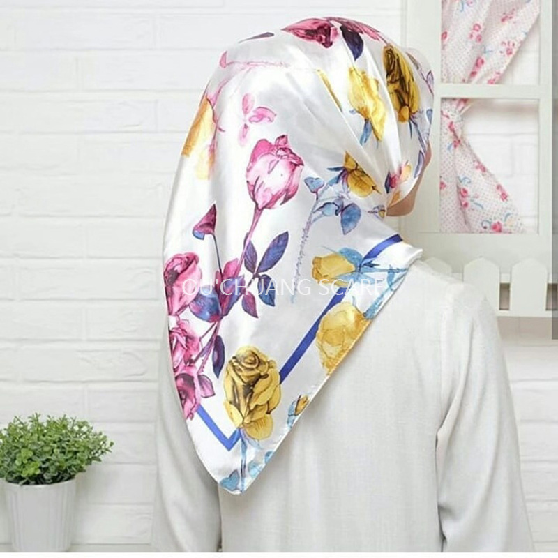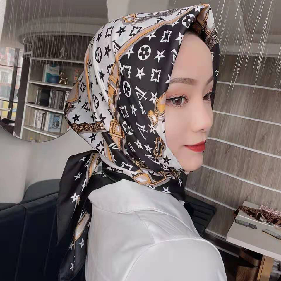 90cm 대형 사각 스카프 새틴 모조 실크 인쇄 얇은 스카프 스카프 여성용 머리 스카프 쉐이크 톤 같은 재고 스카프