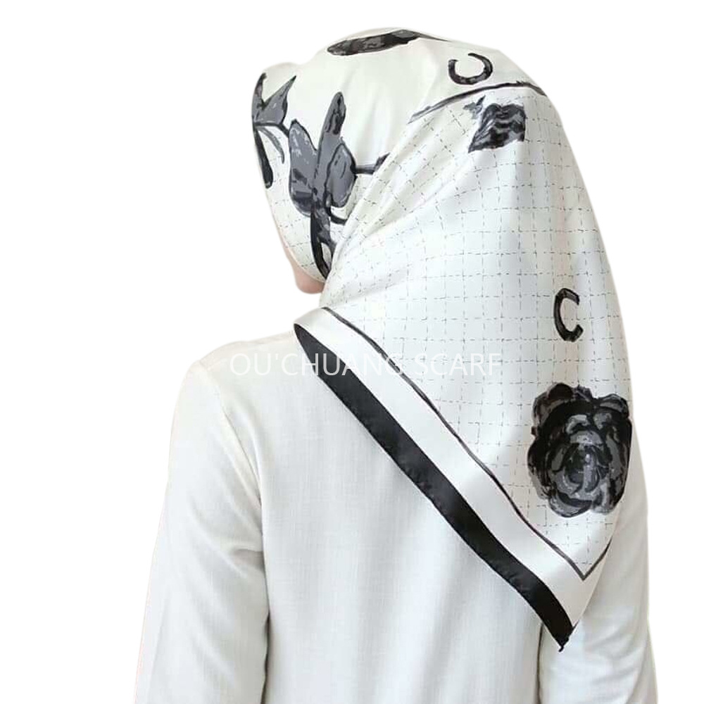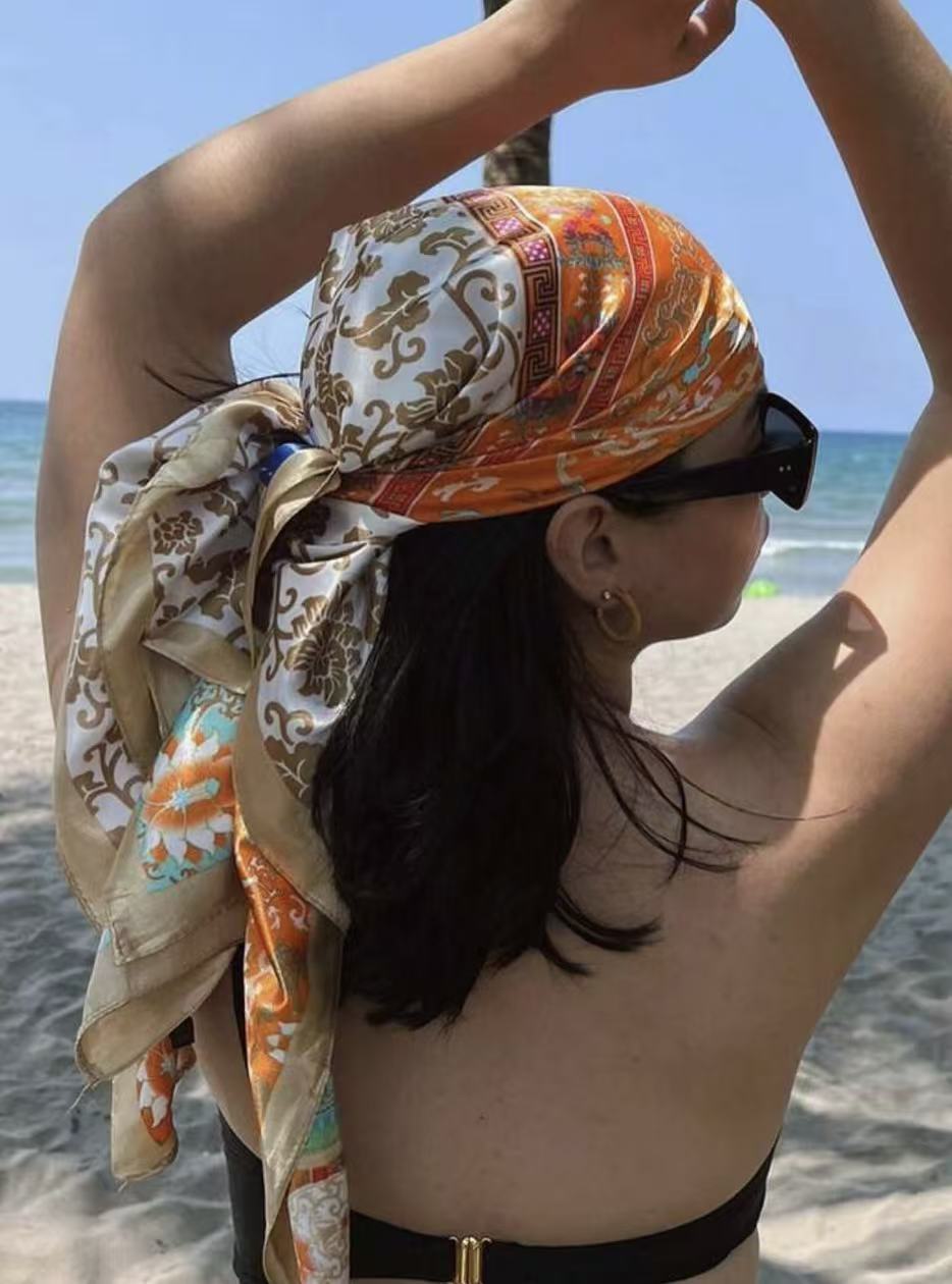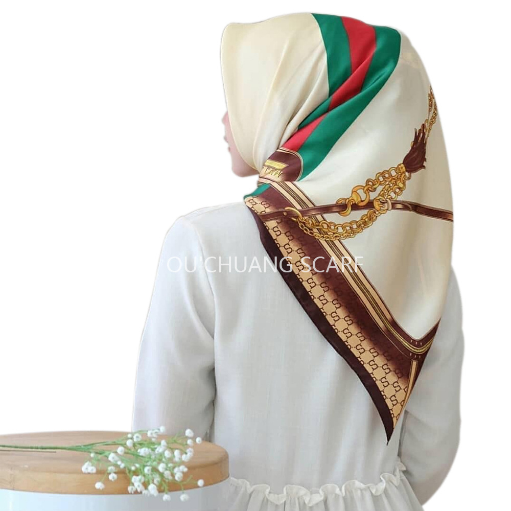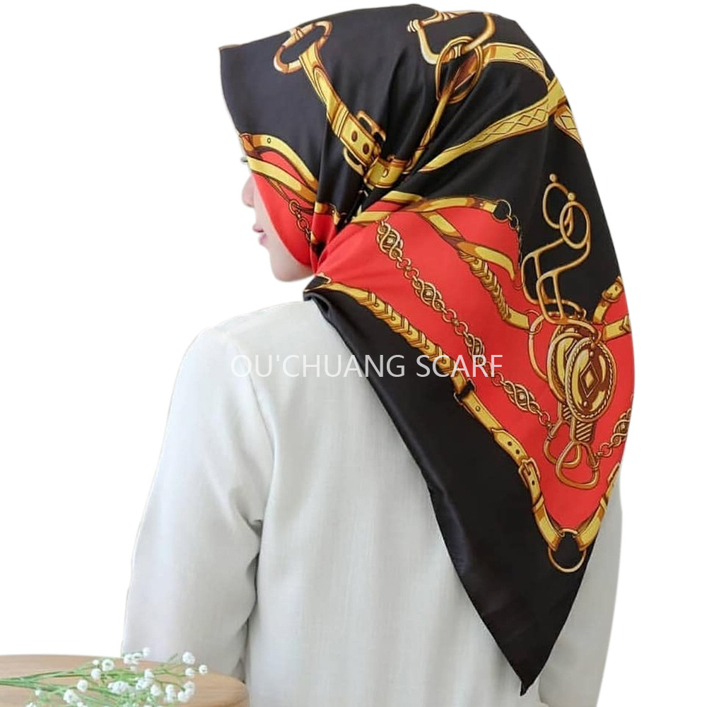 90cm 대형 사각 스카프 새틴 모조 실크 인쇄 얇은 스카프 스카프 여성용 머리 스카프 쉐이크 톤 같은 재고 스카프