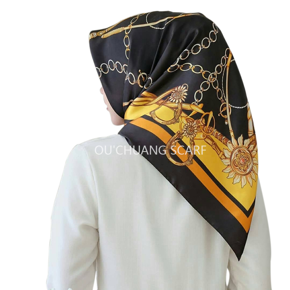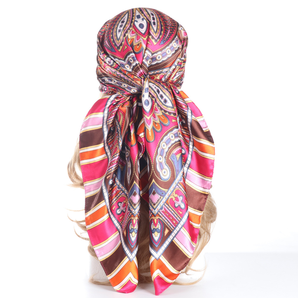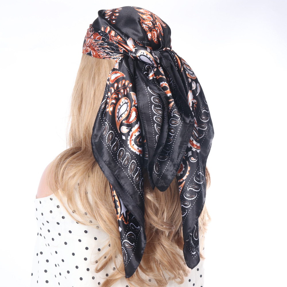 90cm 대형 사각 스카프 새틴 모조 실크 인쇄 얇은 스카프 스카프 여성용 머리 스카프 쉐이크 톤 같은 재고 스카프스토어 가기