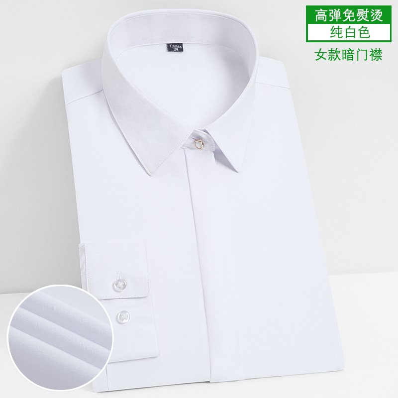 여성용 원피스 긴팔 셔츠 비즈니스 슬림핏 한국 스타일 전문 셔츠 탄성 비 다림질 OL 통근 인터뷰 화이트 셔츠