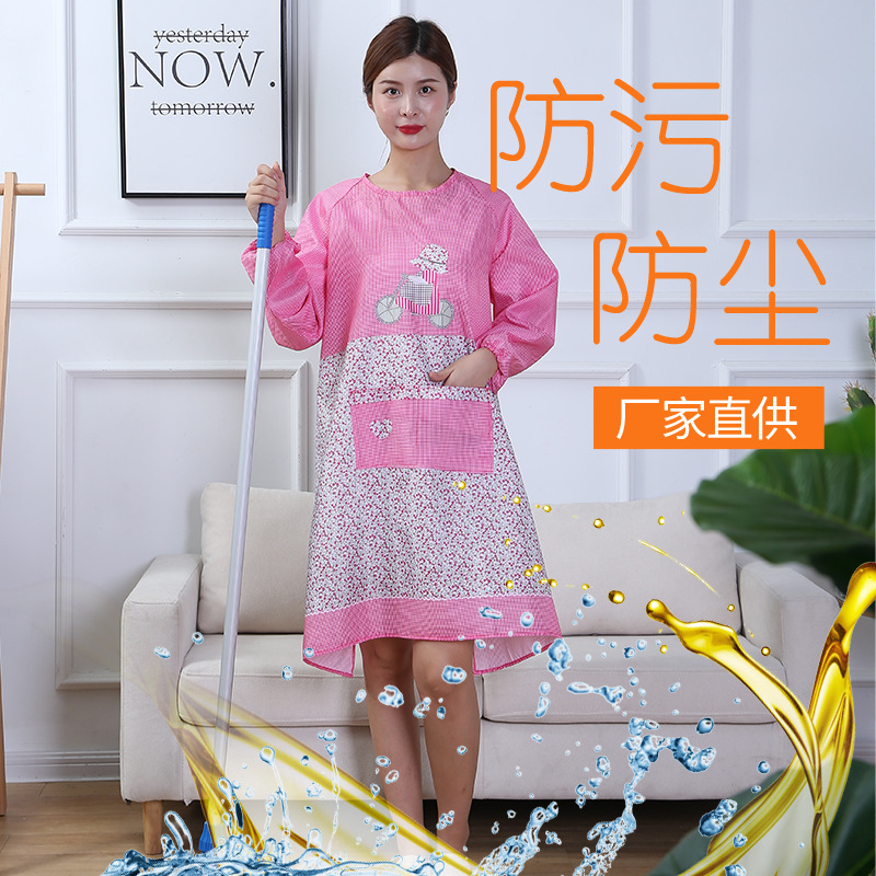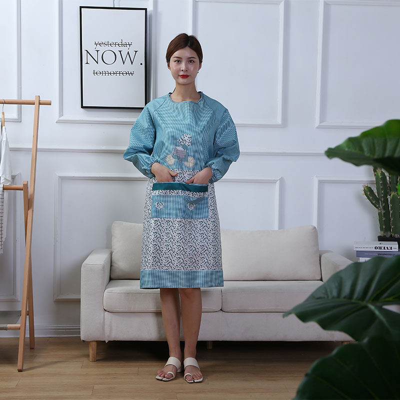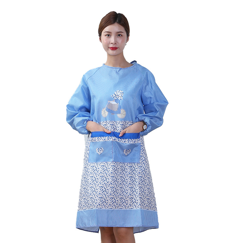 패셔너블한 한국 스타일 프린트 앞치마, 성인 여성용, 큰 주머니, 주방, 식당, 가정용, 도매, 긴팔, 소매 있는 앞치마스토어 가기