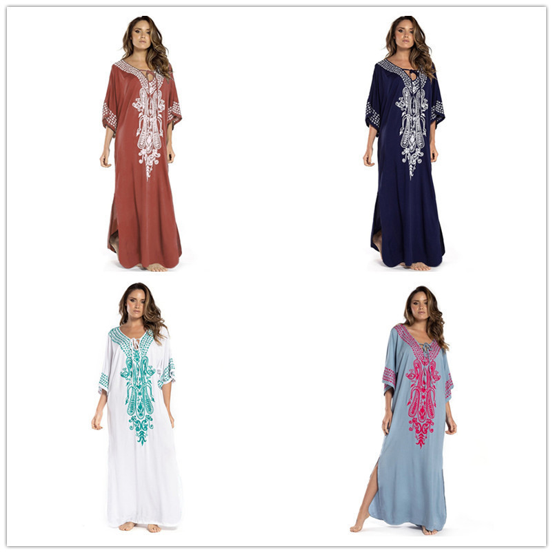 크로스-국경 폭발 유럽과 미국 램 면 수 놓은 해변 원피스 휴가 원피스 비키니 외부 블라우스 휴가 자외선 차단제 셔츠스토어 가기