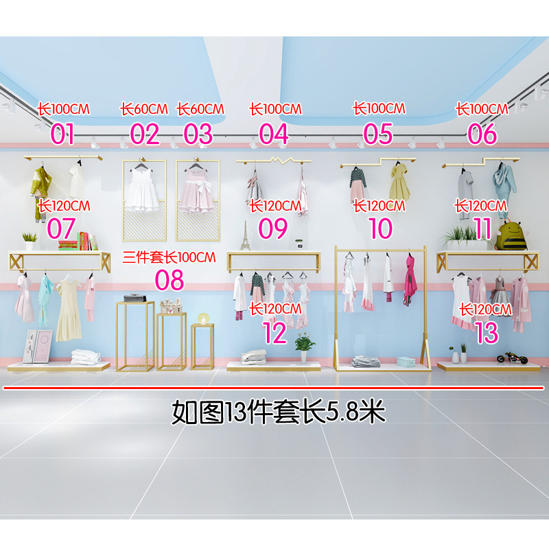 아동 의류 매장 디스플레이 랙 바닥 서 어린이 의류 매장 벽걸이 패션 옷걸이 임산부 및 유아 선반 디스플레이 캐비닛