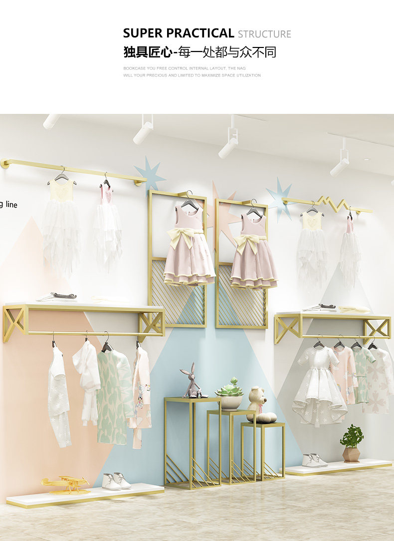 아동 의류 매장 디스플레이 랙 바닥 서 어린이 의류 매장 벽걸이 패션 옷걸이 임산부 및 유아 선반 디스플레이 캐비닛스토어 가기