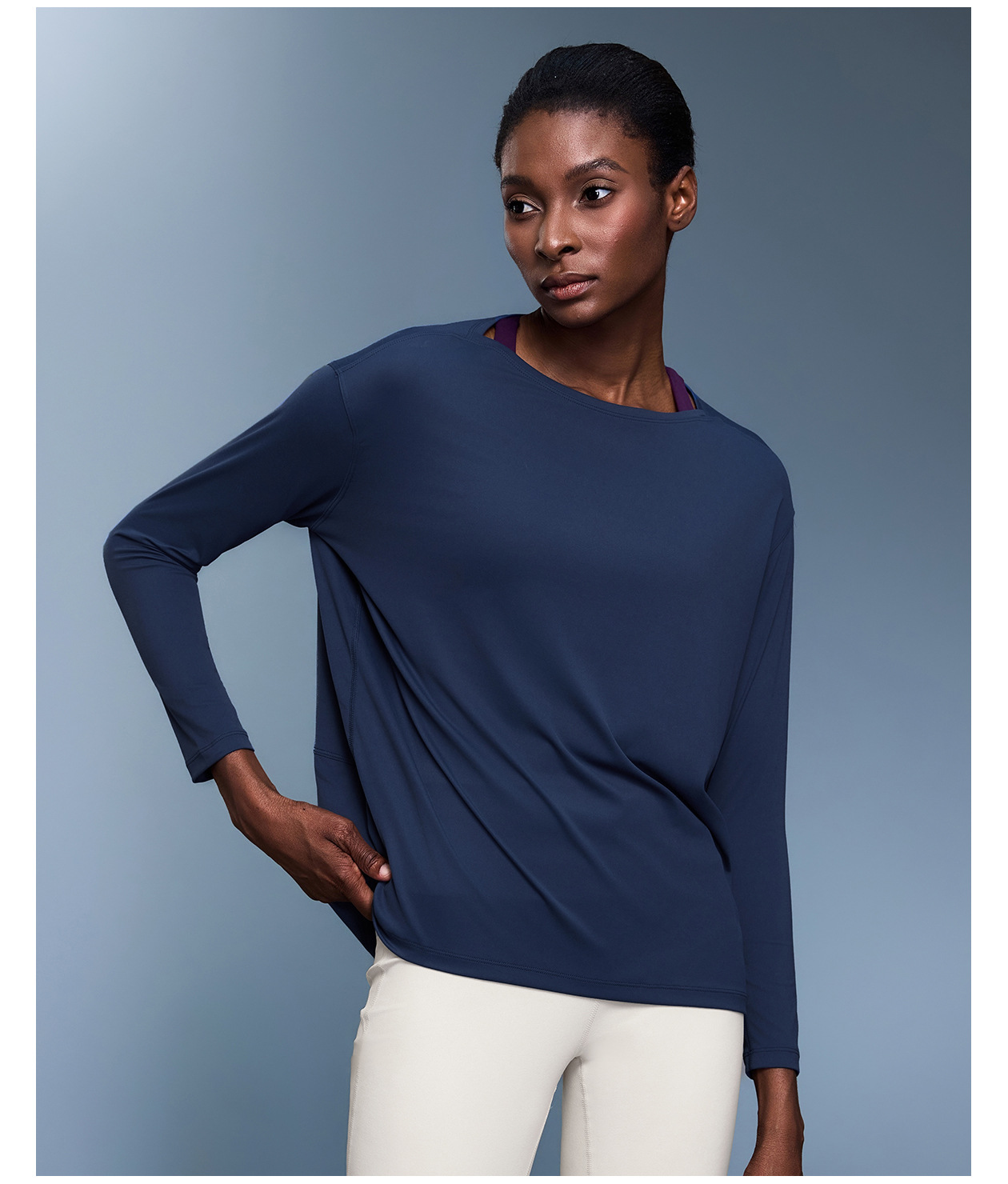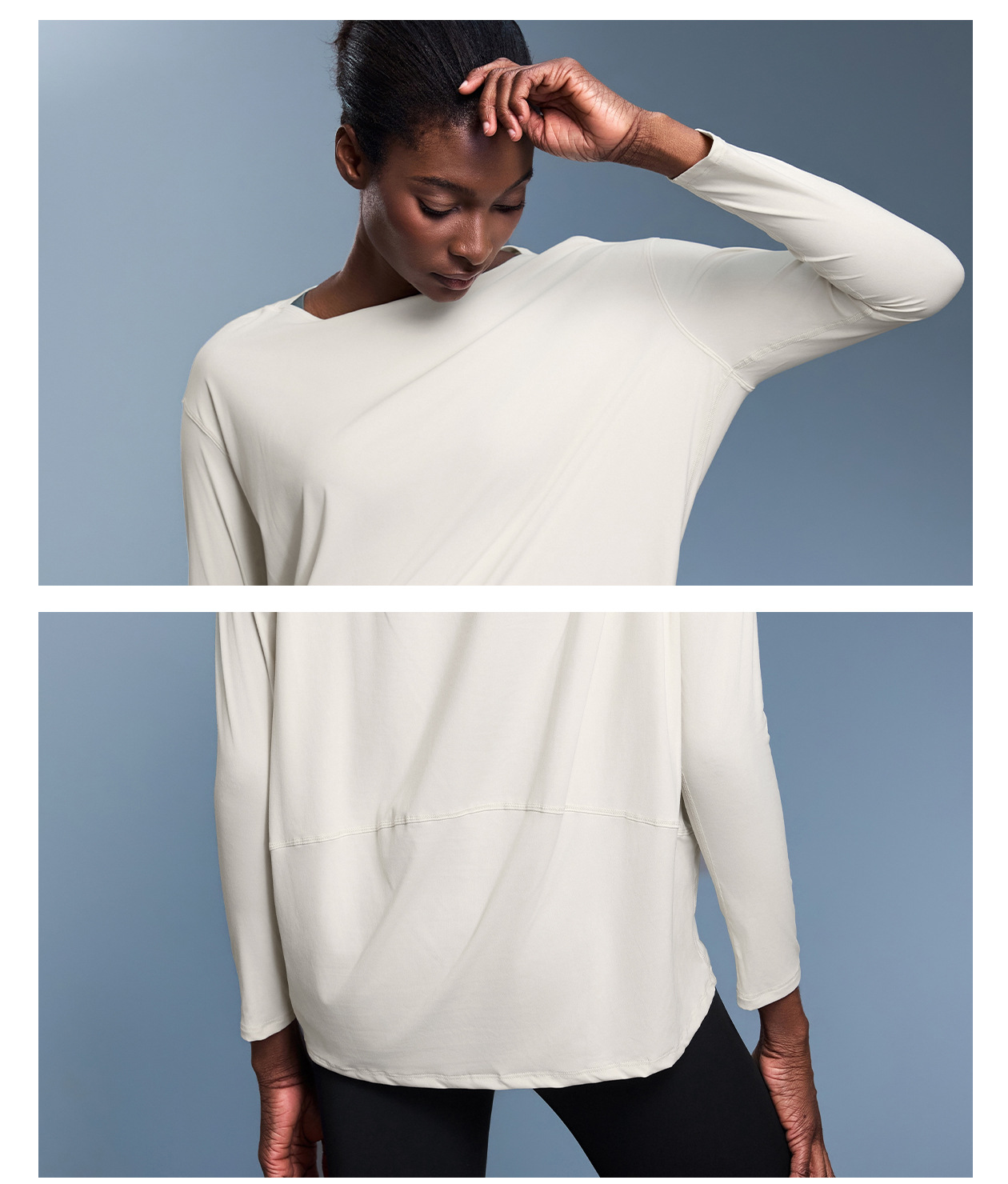 국경을 넘는 새로운 양면 알몸 느슨한 긴팔 여성용 슬림 핏 통기성 간단한 훈련 피트니스 요가 세트 DS010스토어 가기