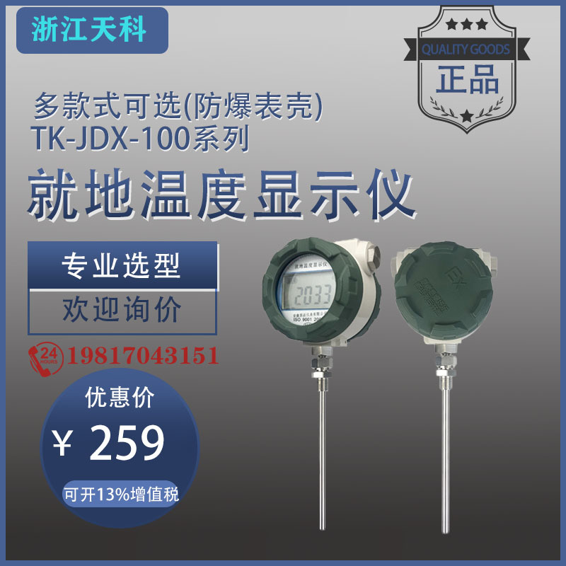 절강 Tianke 폭발 방지 스테인레스 스틸 PT100 디지털 온도계 배터리 전원 공급 장치 로컬 디지털 온도계