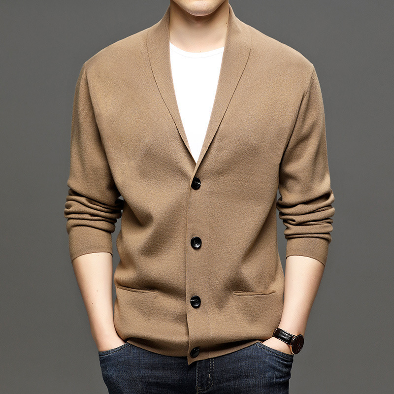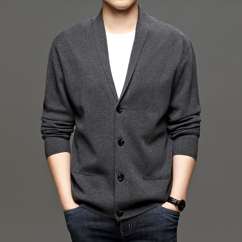 재고 새로운 옷깃 느슨한 단색 진짜 포켓 청소년 재킷 남자의 유행 캐주얼 니트 카디건 도매