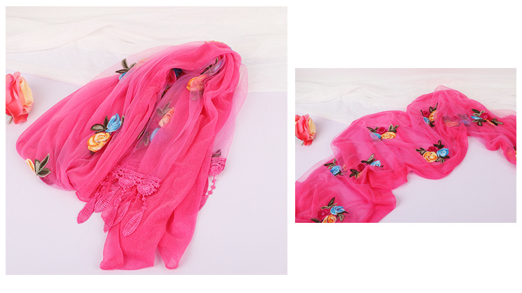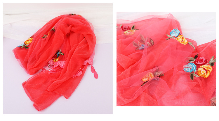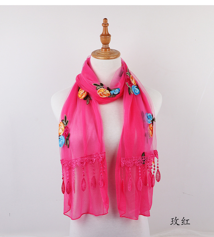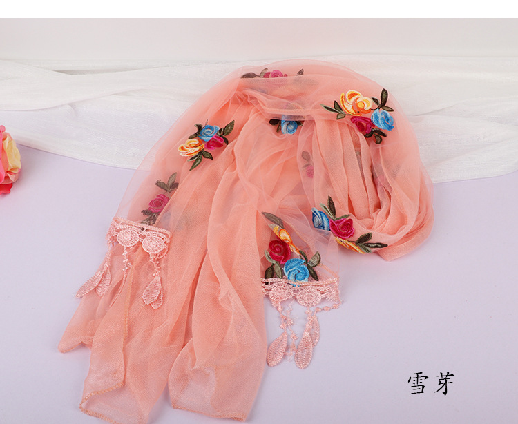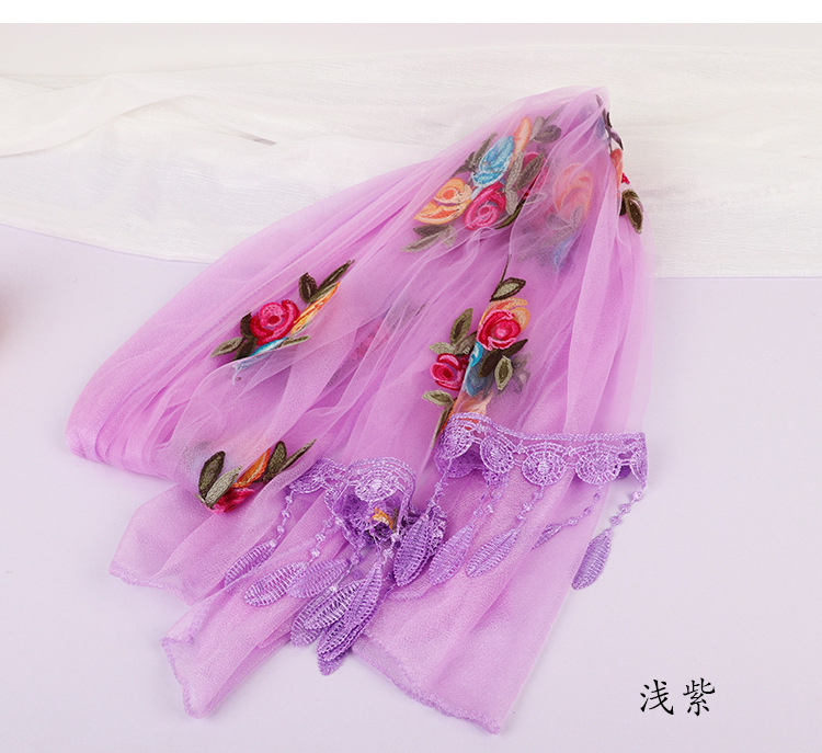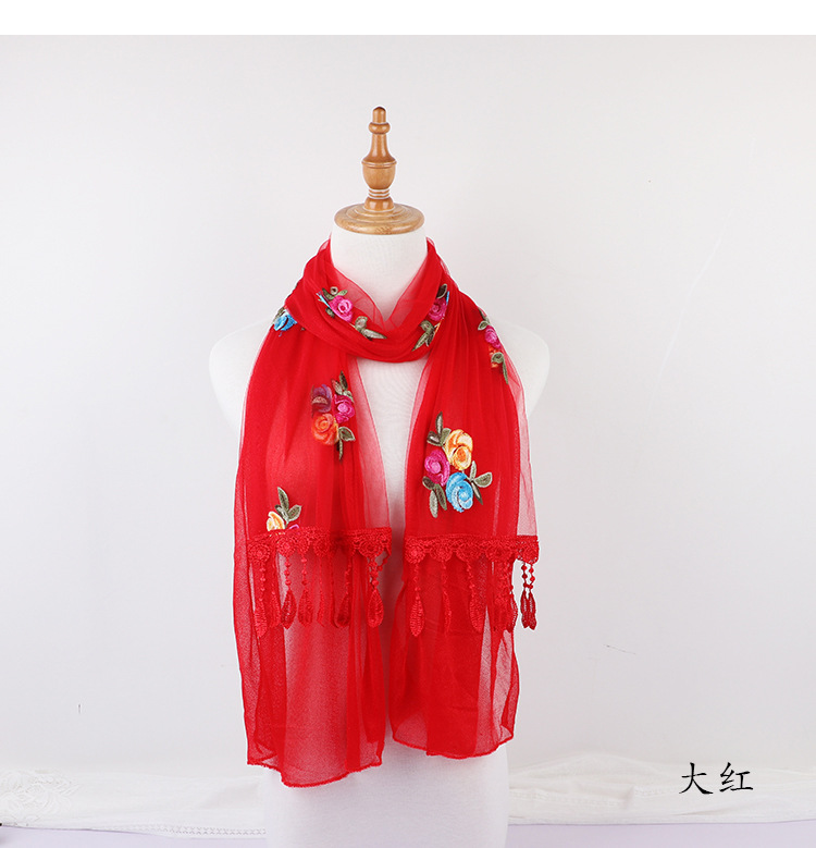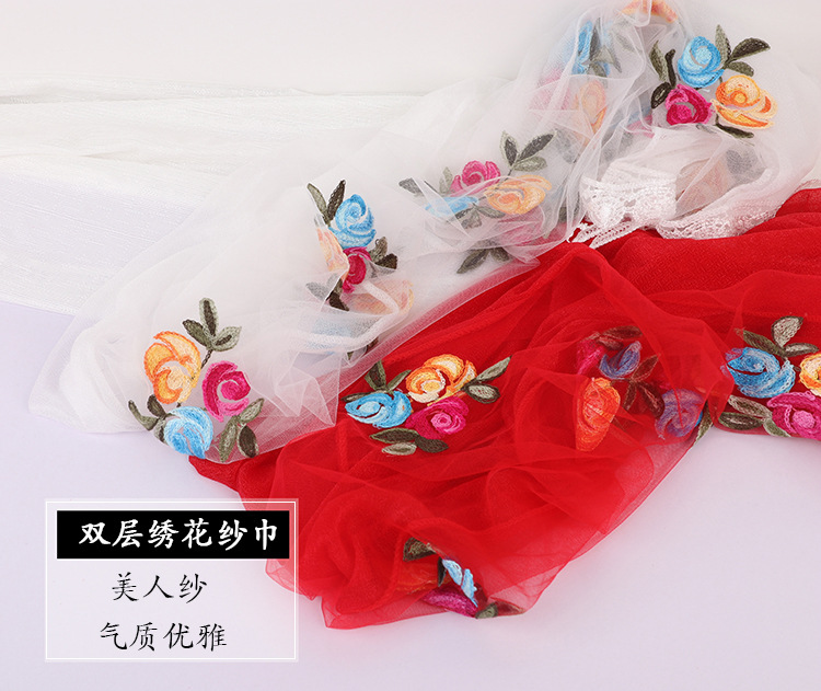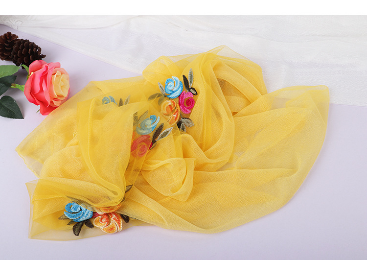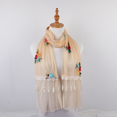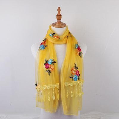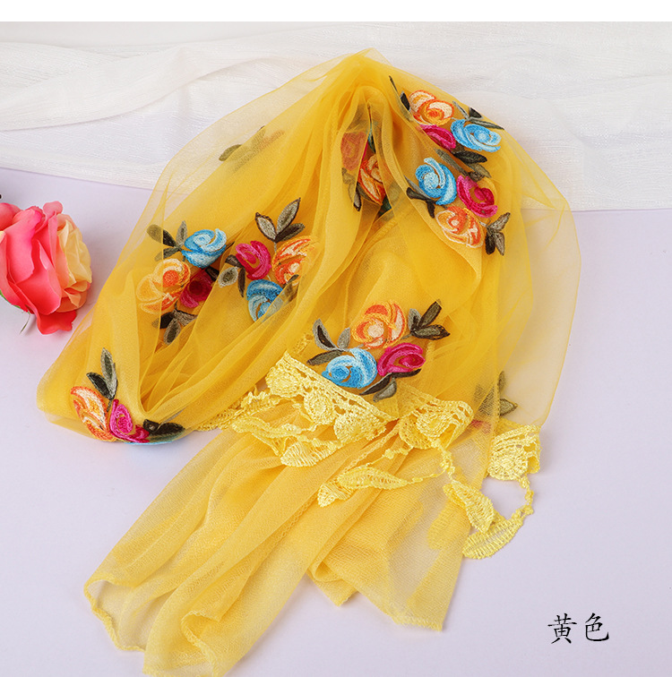 골든 로즈 자수 실크 스카프 여성용 긴 더블 레이어 뷰티 원사 숄 레이스 봄 가을 겨울 모든 매치 스카프