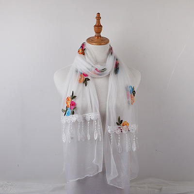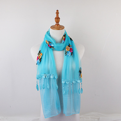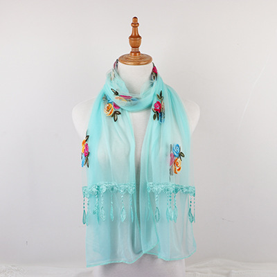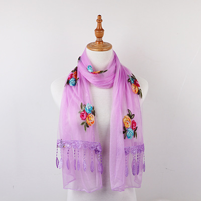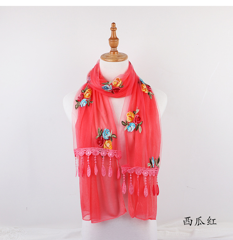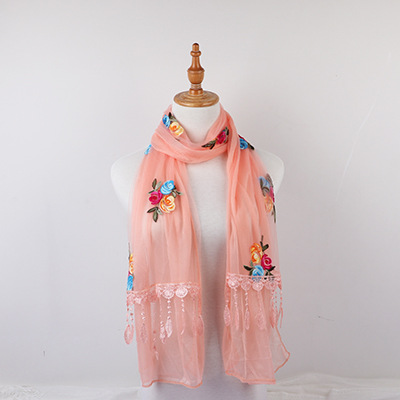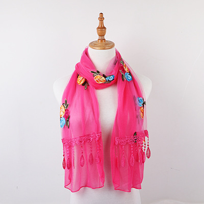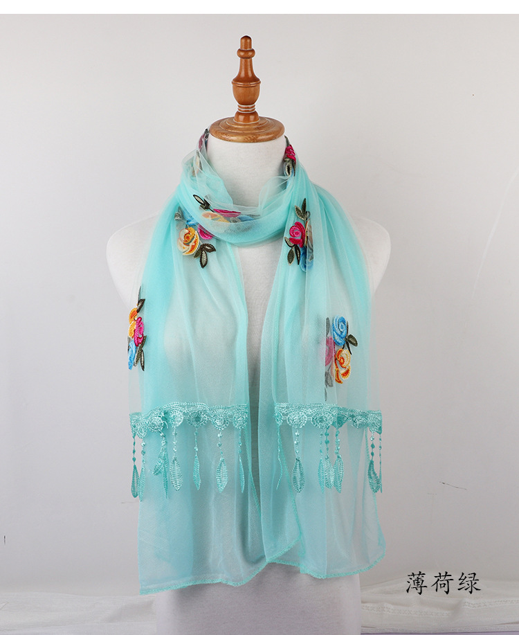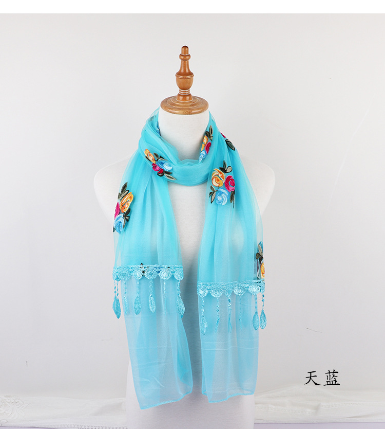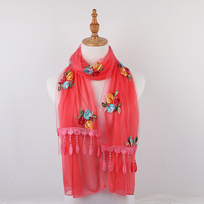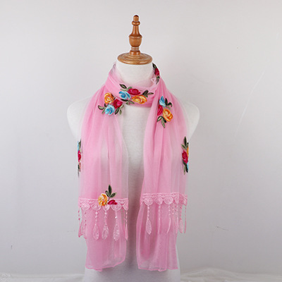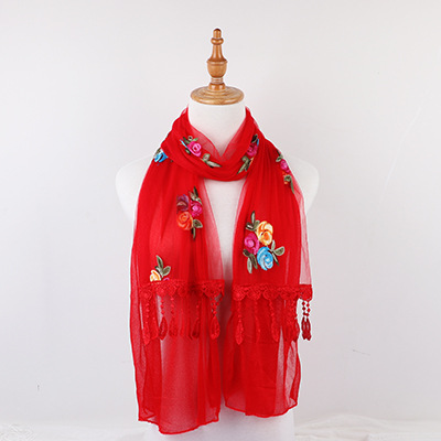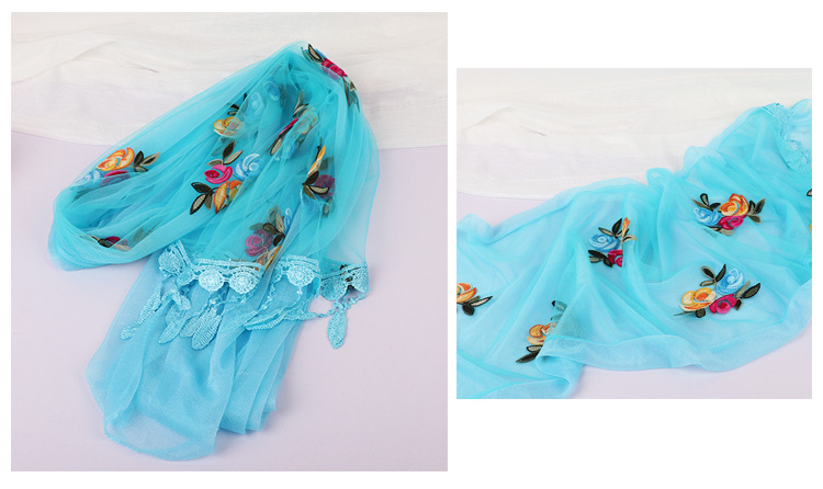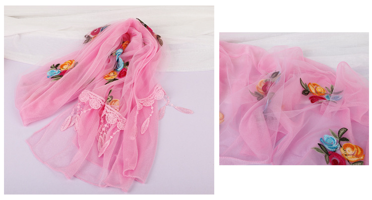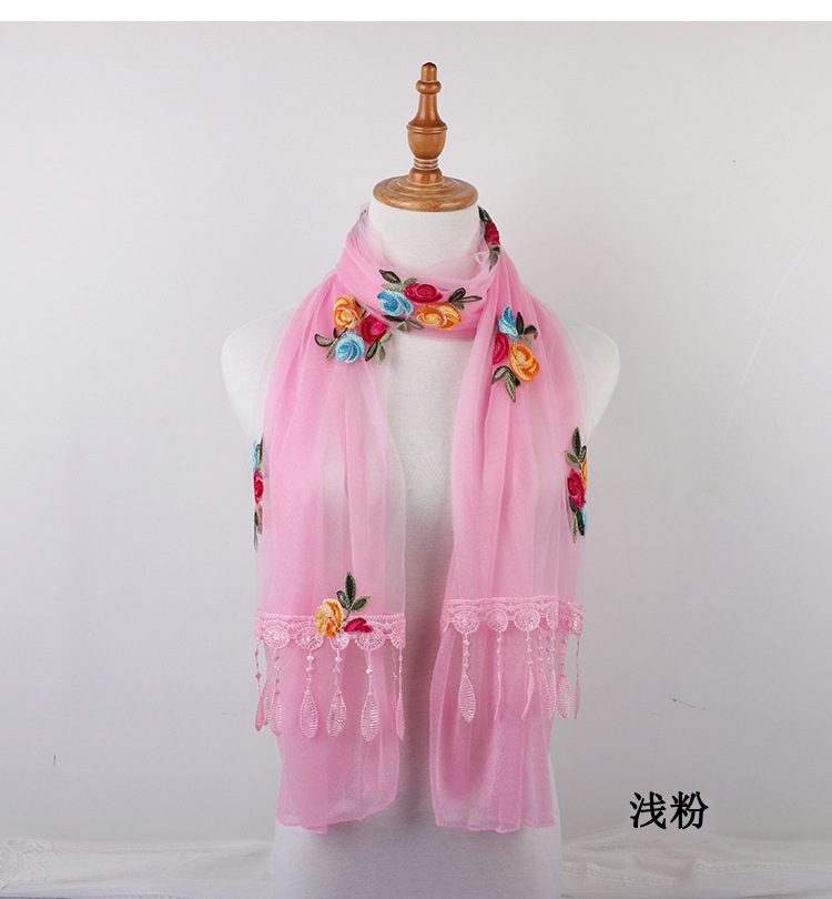 골든 로즈 자수 실크 스카프 여성용 긴 더블 레이어 뷰티 원사 숄 레이스 봄 가을 겨울 모든 매치 스카프