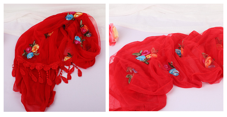골든 로즈 자수 실크 스카프 여성용 긴 더블 레이어 뷰티 원사 숄 레이스 봄 가을 겨울 모든 매치 스카프스토어 가기