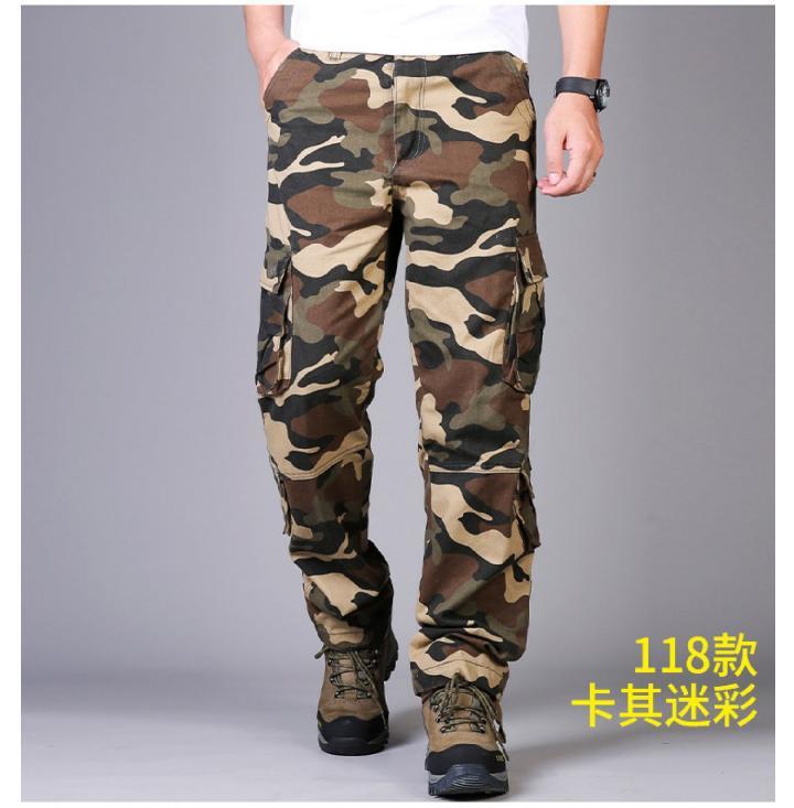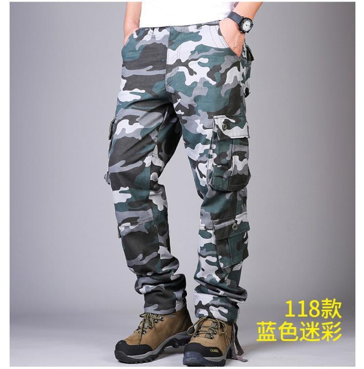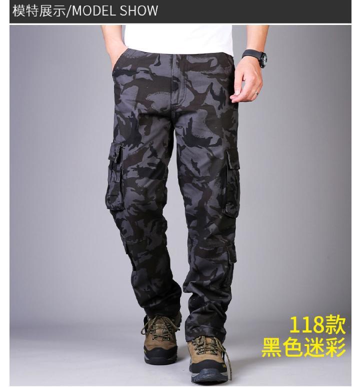 순면 위장 바지 남성용 카고 바지 두꺼운 스트레이트 다리 바지 플러스 사이즈 캐주얼 바지 군사 훈련 육군 바지 내마모성스토어 가기