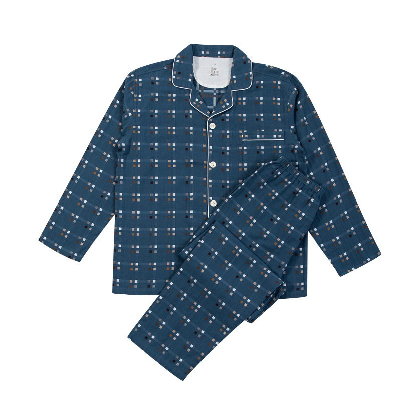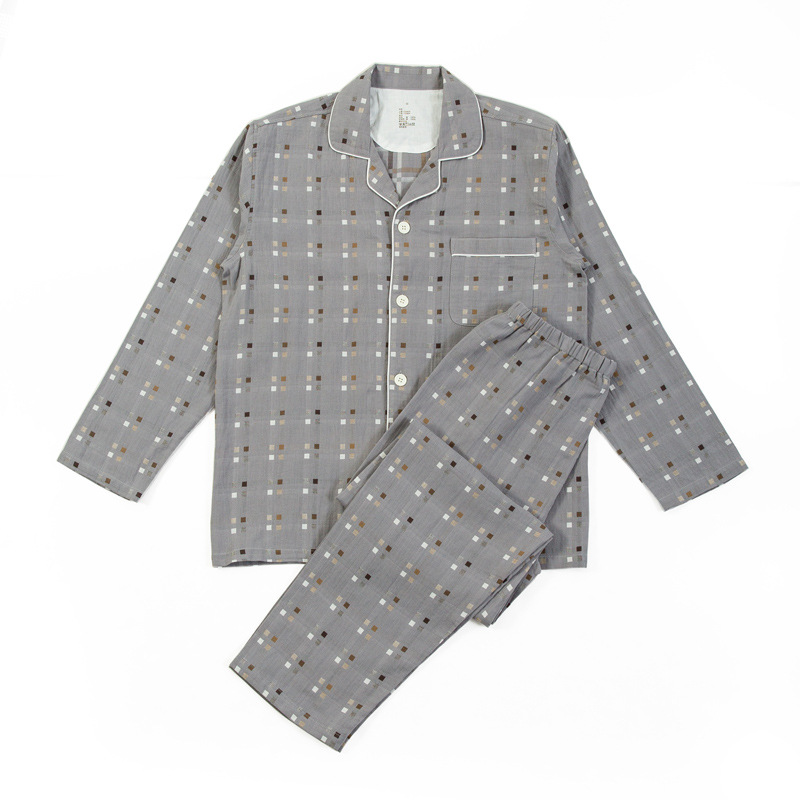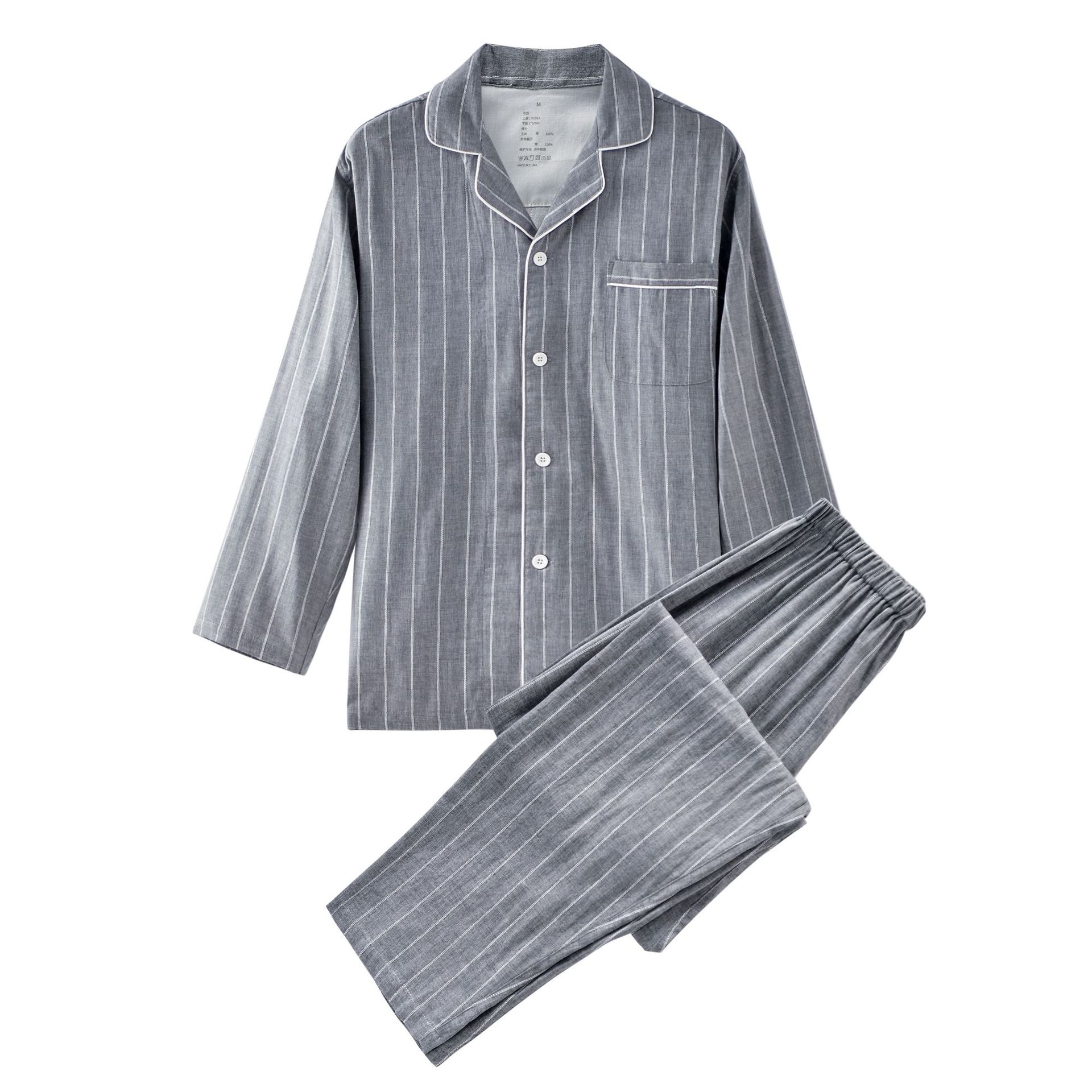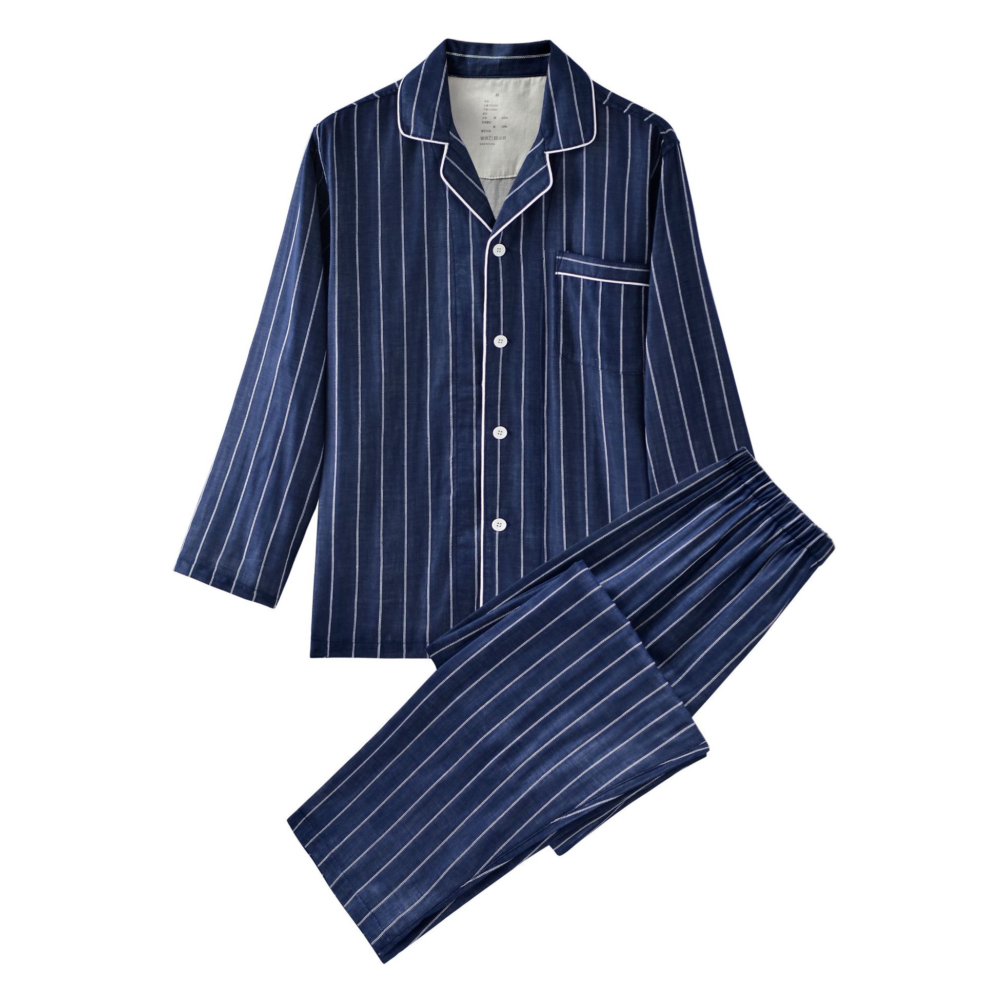 신상 순면 이중 거즈 잠옷 심플한 격자무늬 스트라이프 무봉제 봄가을 긴팔 남녀 커플 홈웨어 세트