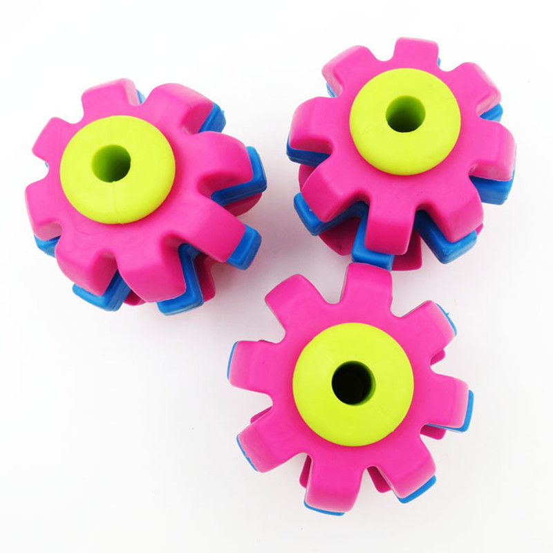 애완동물 장난감 TPR 3 색 회전 공 회전 기어 고무 물림 방지 장난감 회전 공 애완 동물 장난감