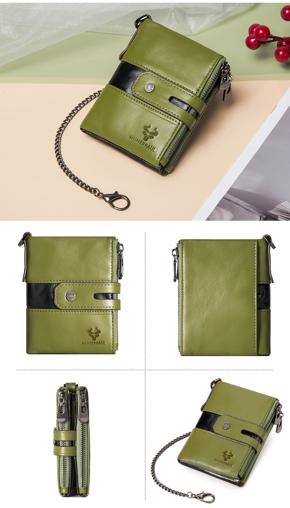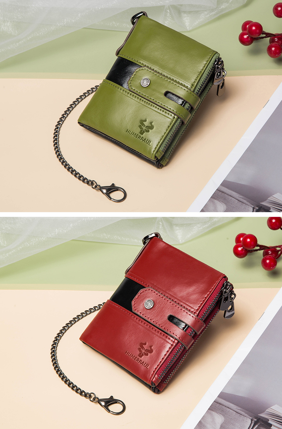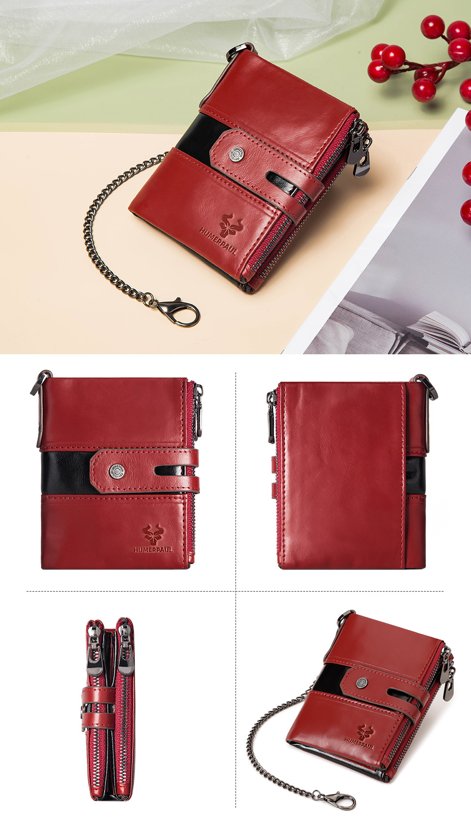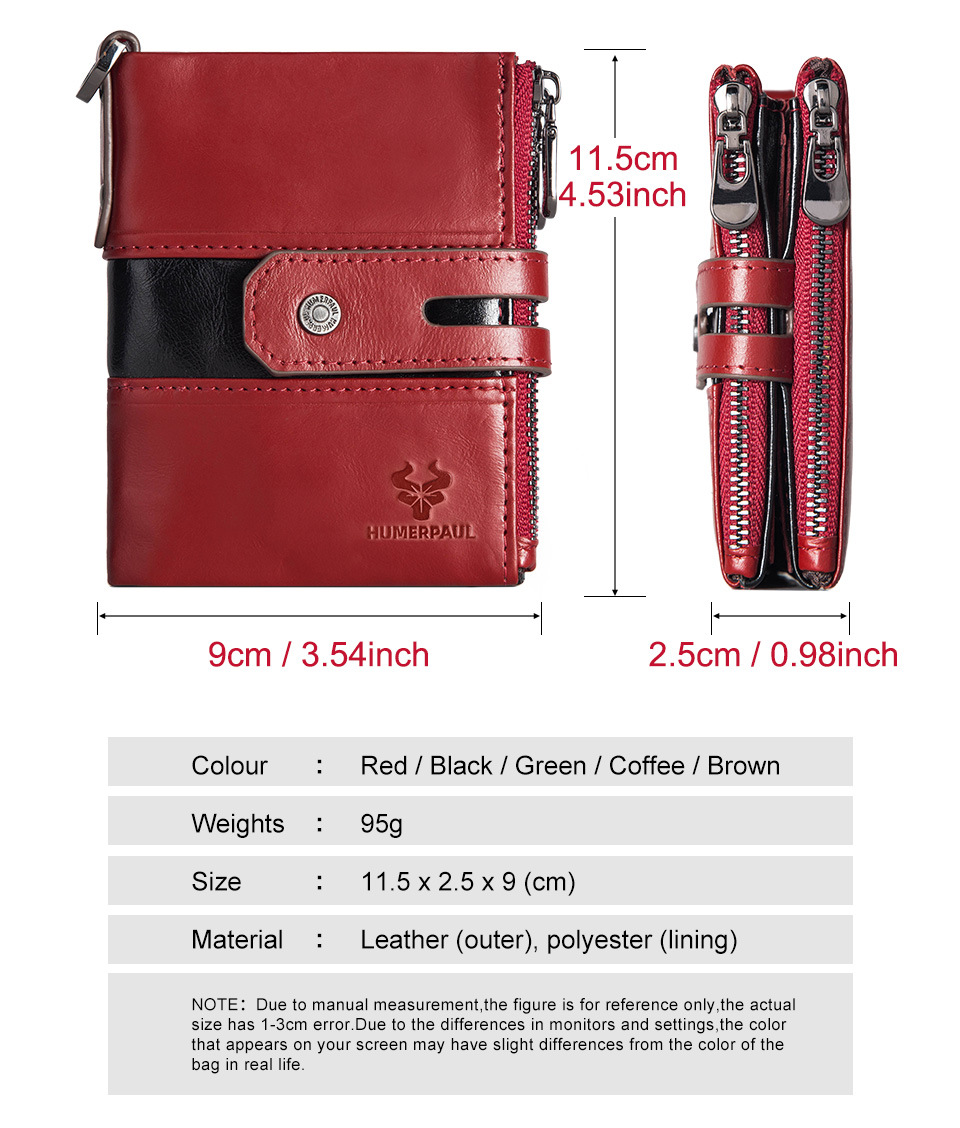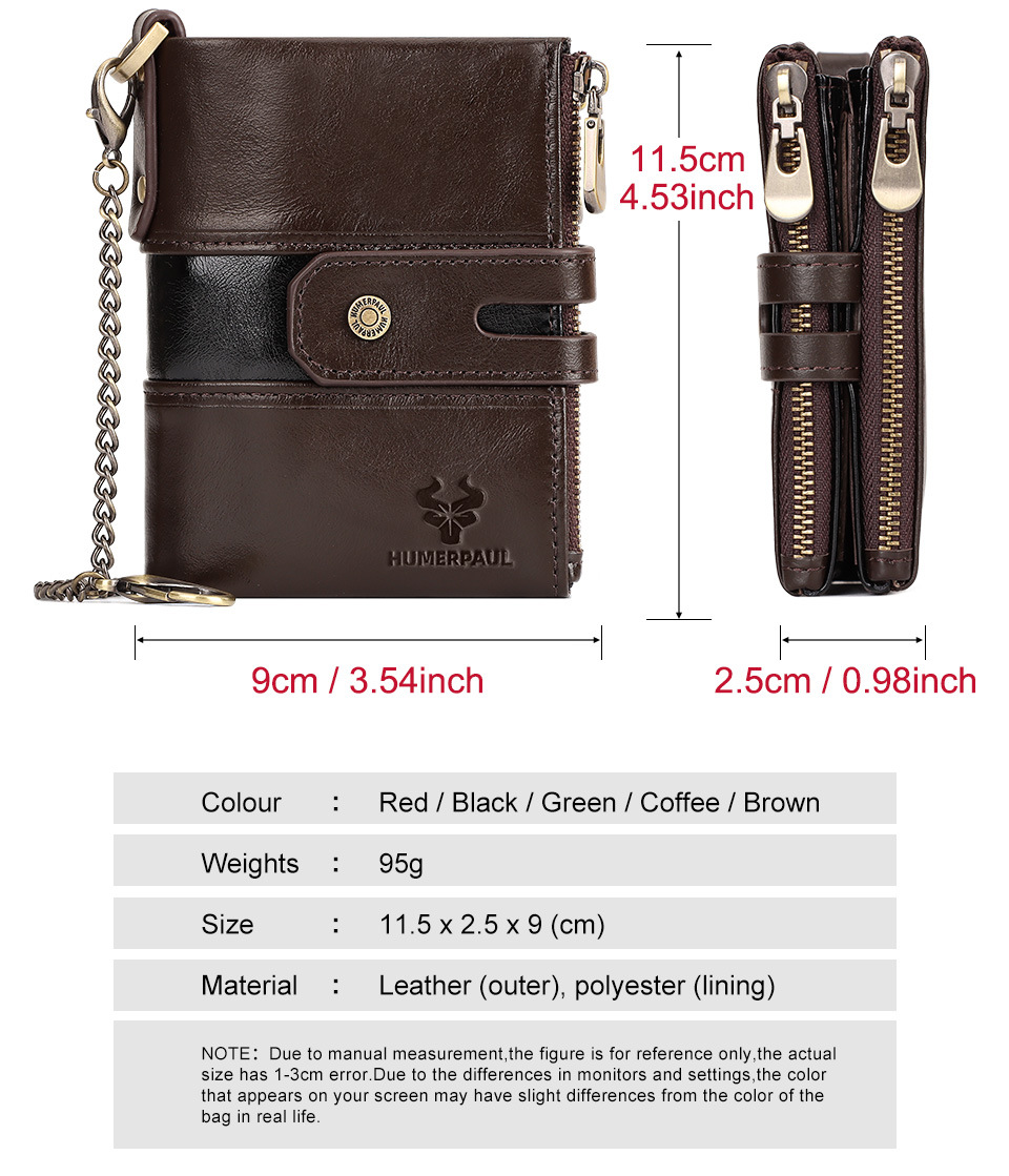 허머 폴 남성 가죽 지갑 복고풍 간단한 동전 지갑 더블 지퍼 첫 번째 레이어 소 가죽 RFID 지갑 도매