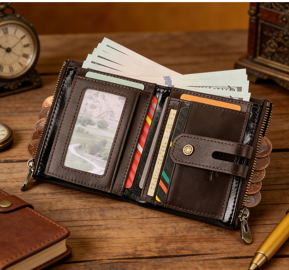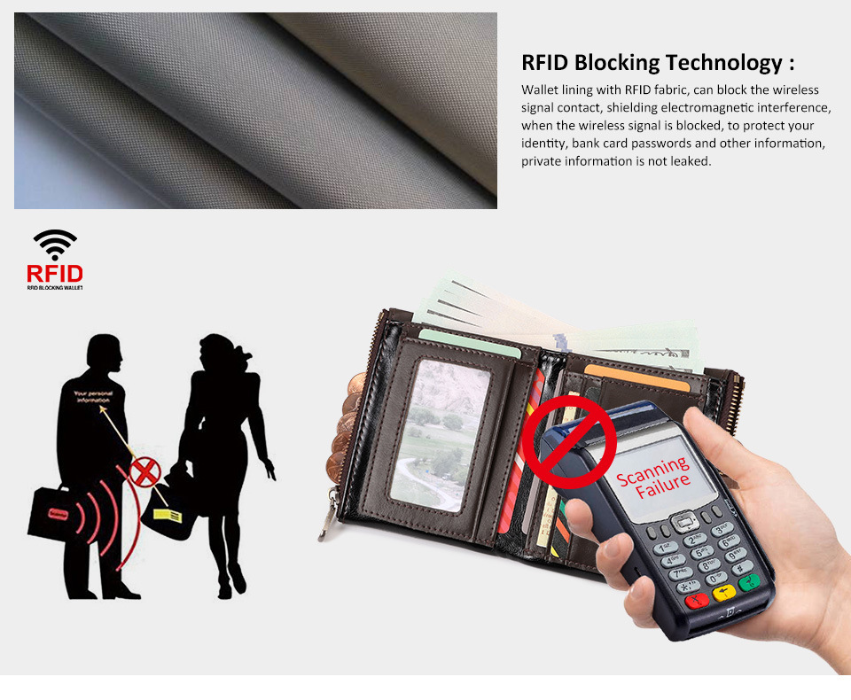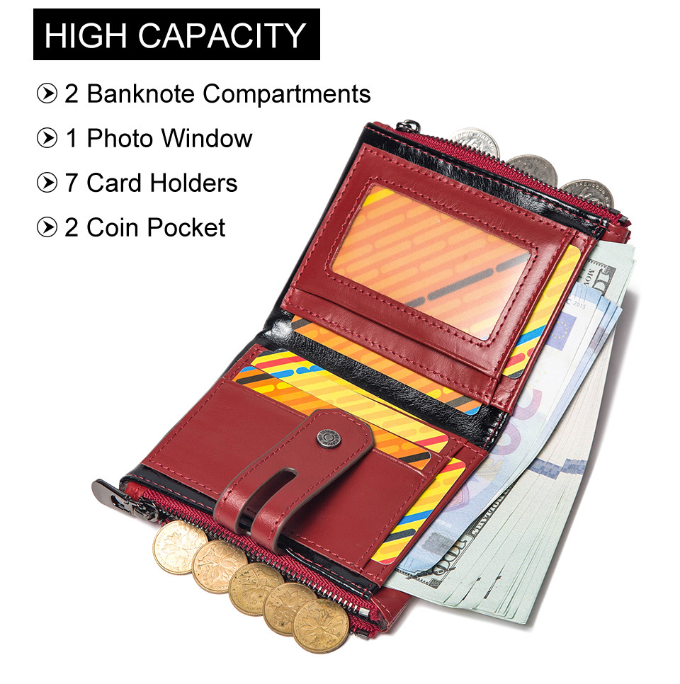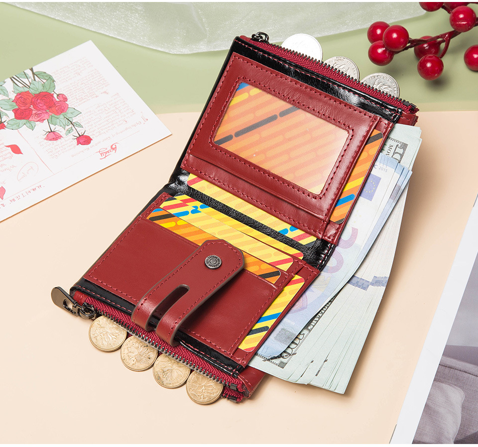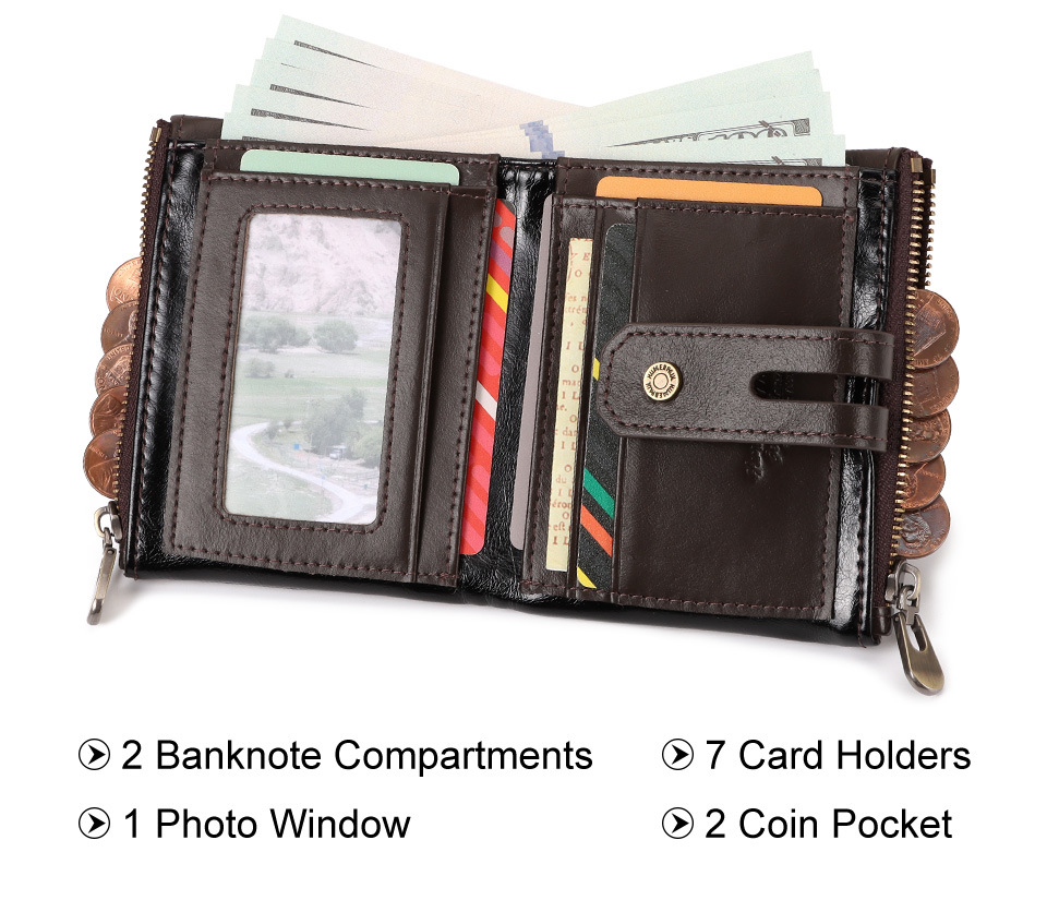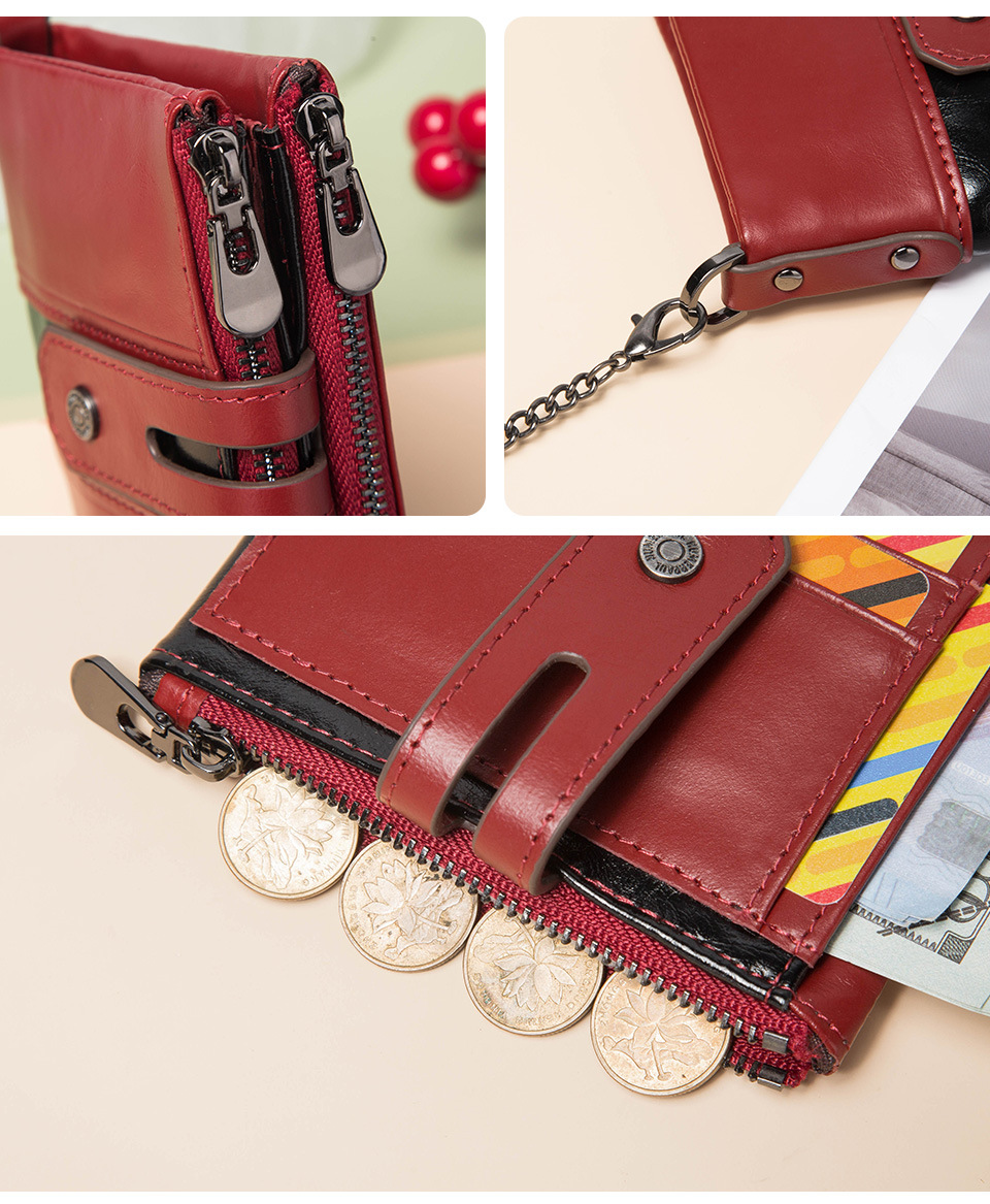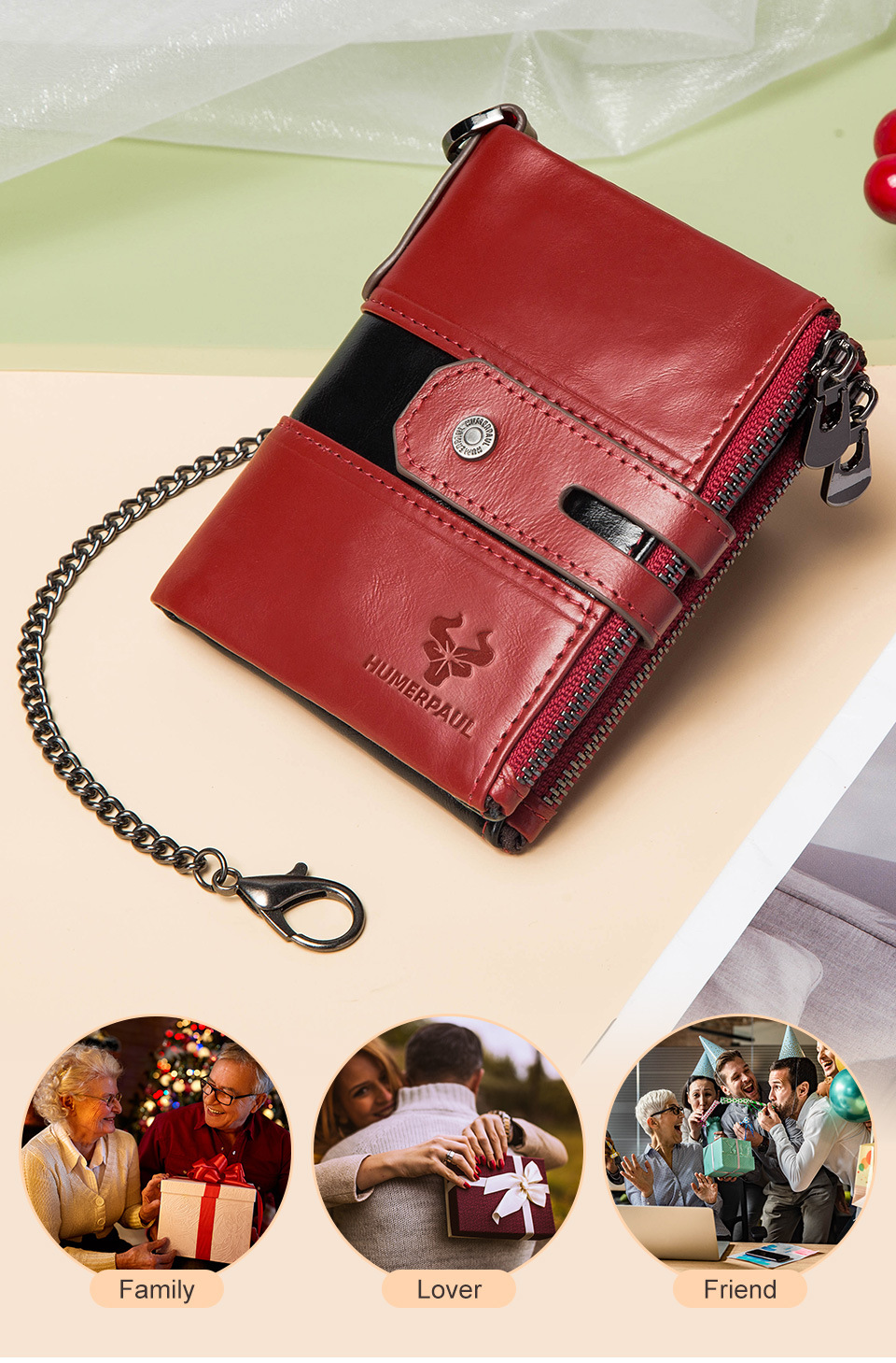 허머 폴 남성 가죽 지갑 복고풍 간단한 동전 지갑 더블 지퍼 첫 번째 레이어 소 가죽 RFID 지갑 도매