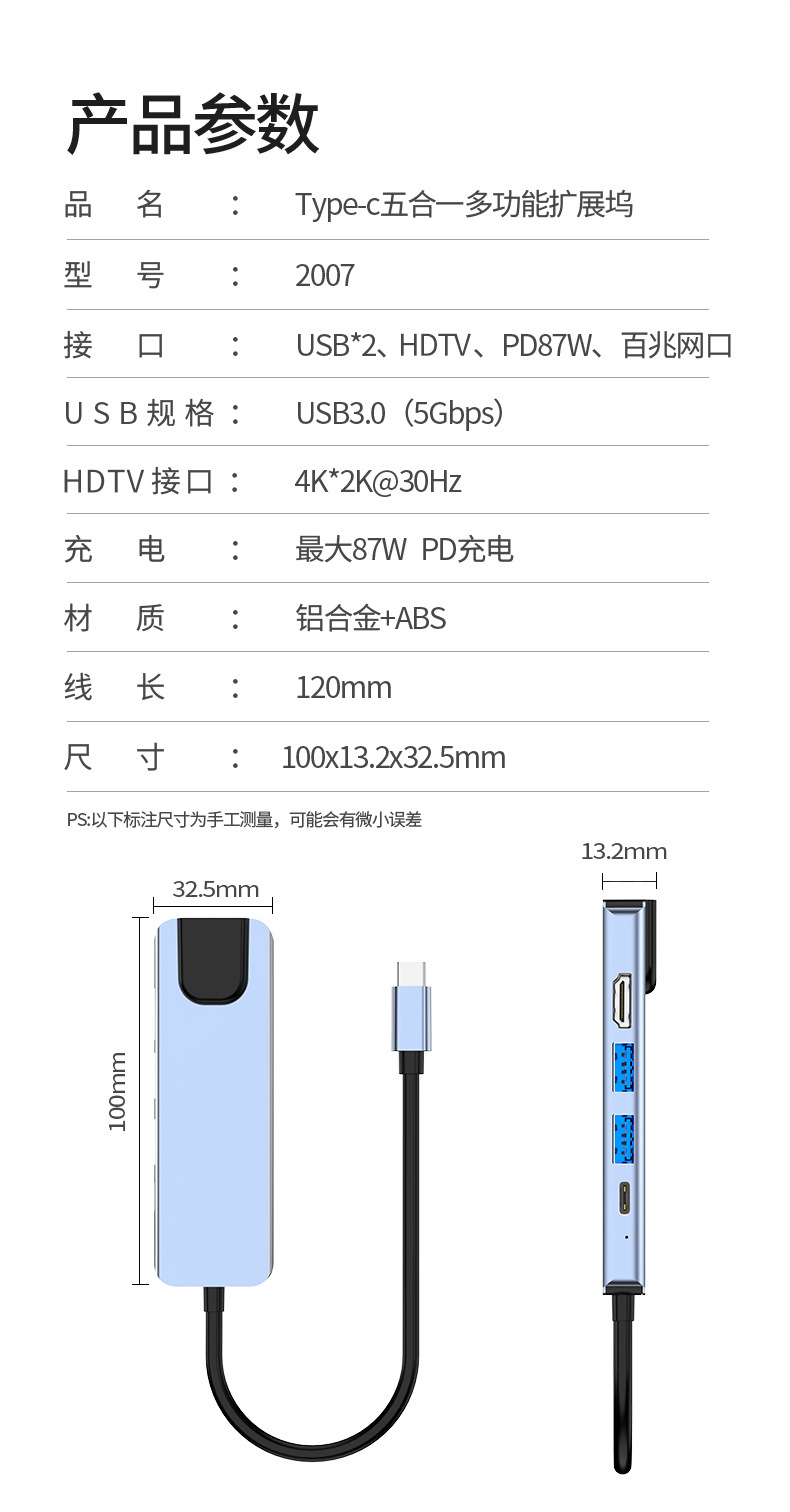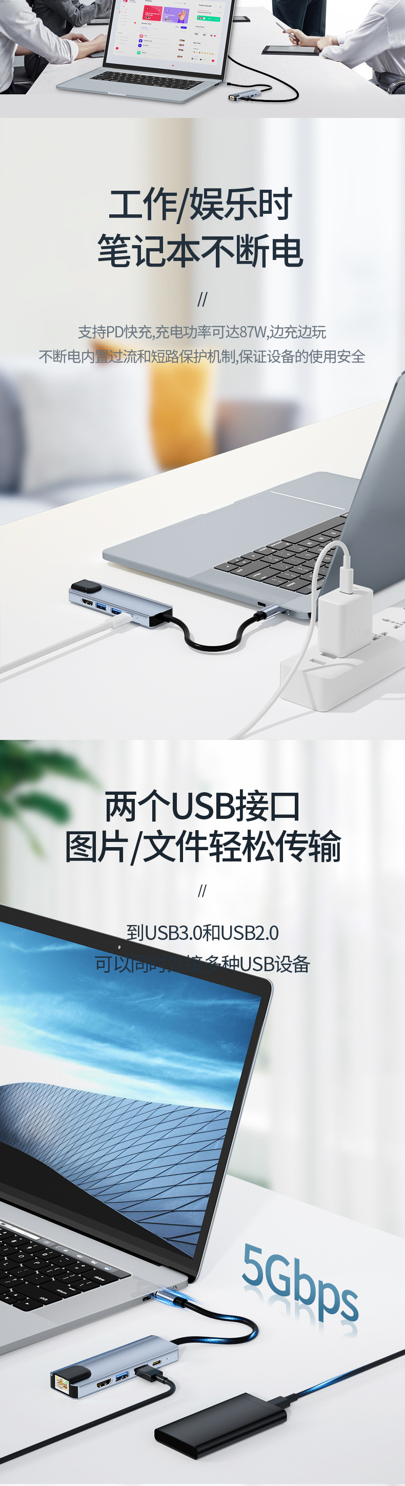 애플 맥북 5-in-one USB3.0HUB 노트북 허브 확장 도크용 도킹 스테이션 Type-C