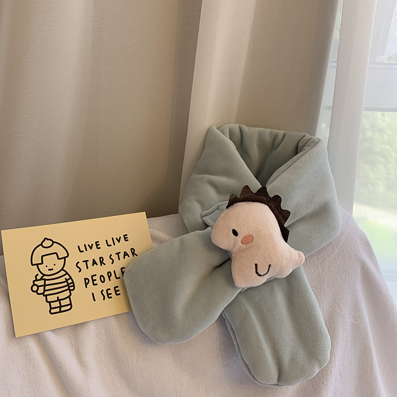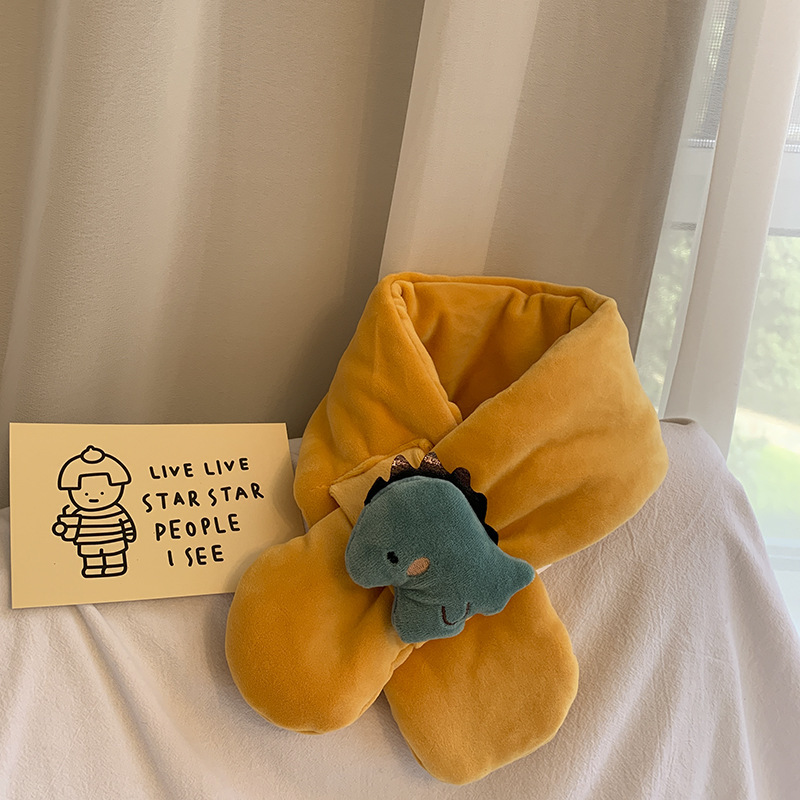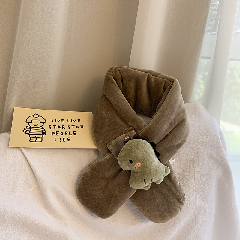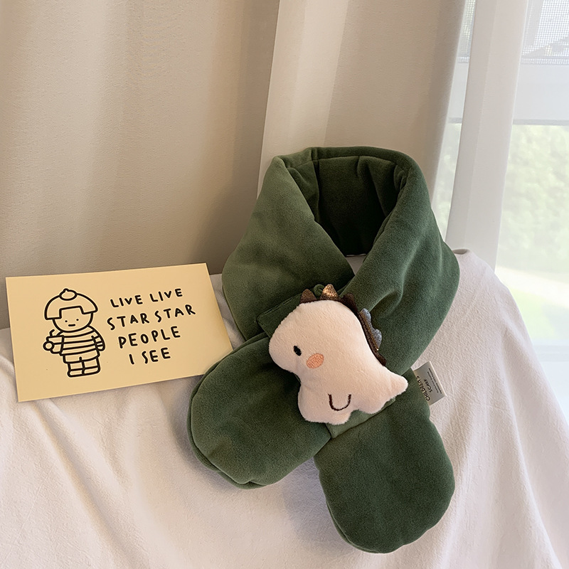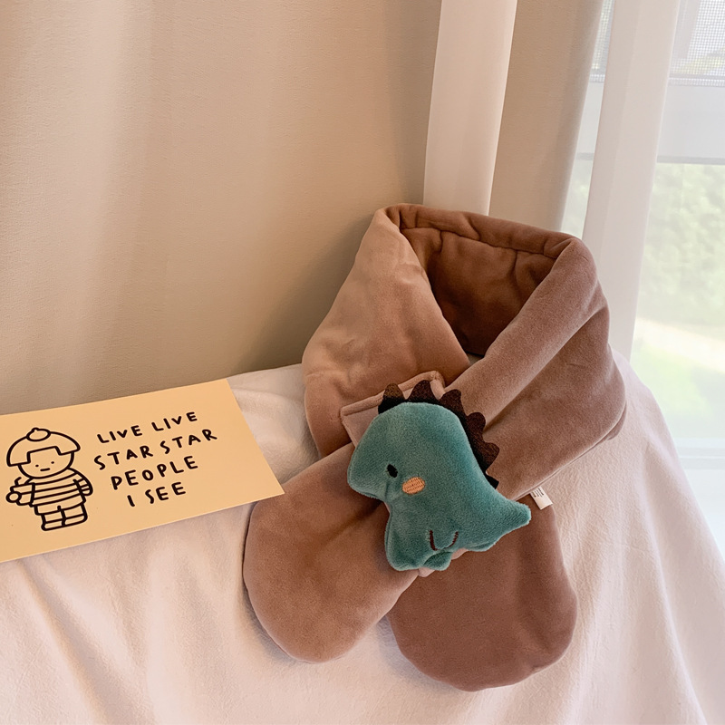 2021 가을과 겨울 한국 새로운 어린이 스카프 봉제 만화 공룡 크로스 스카프 소년과 소녀 아기 따뜻한 칼라