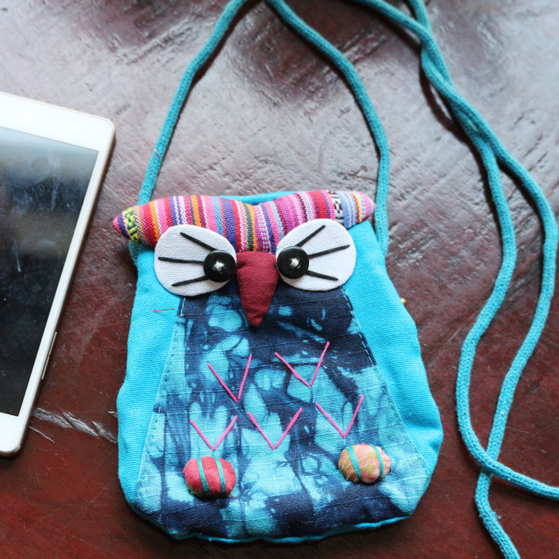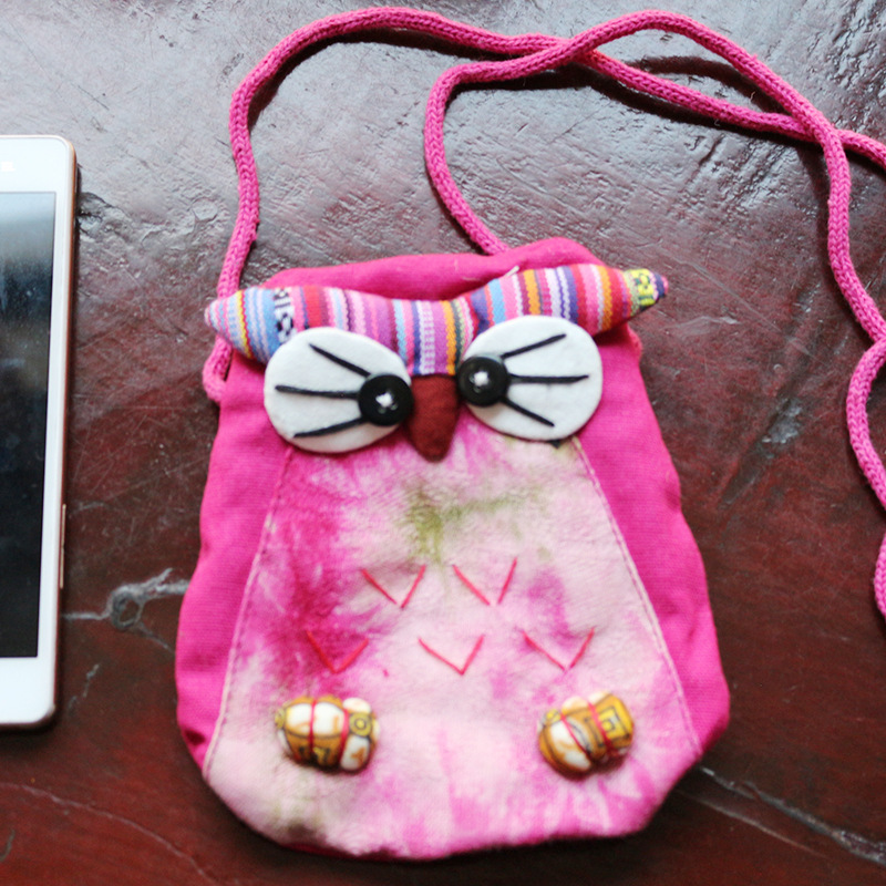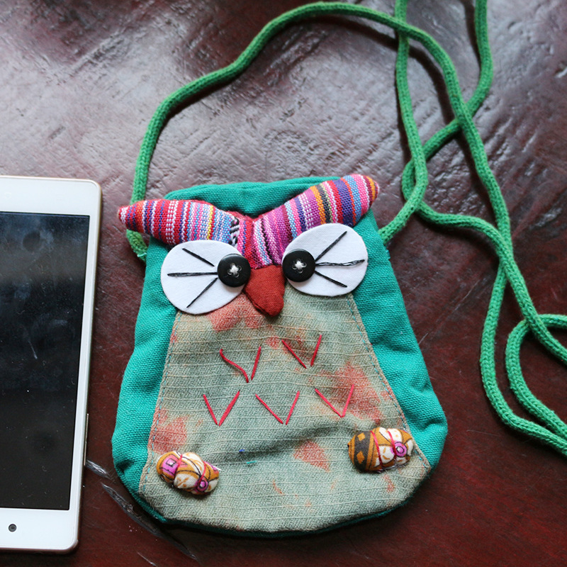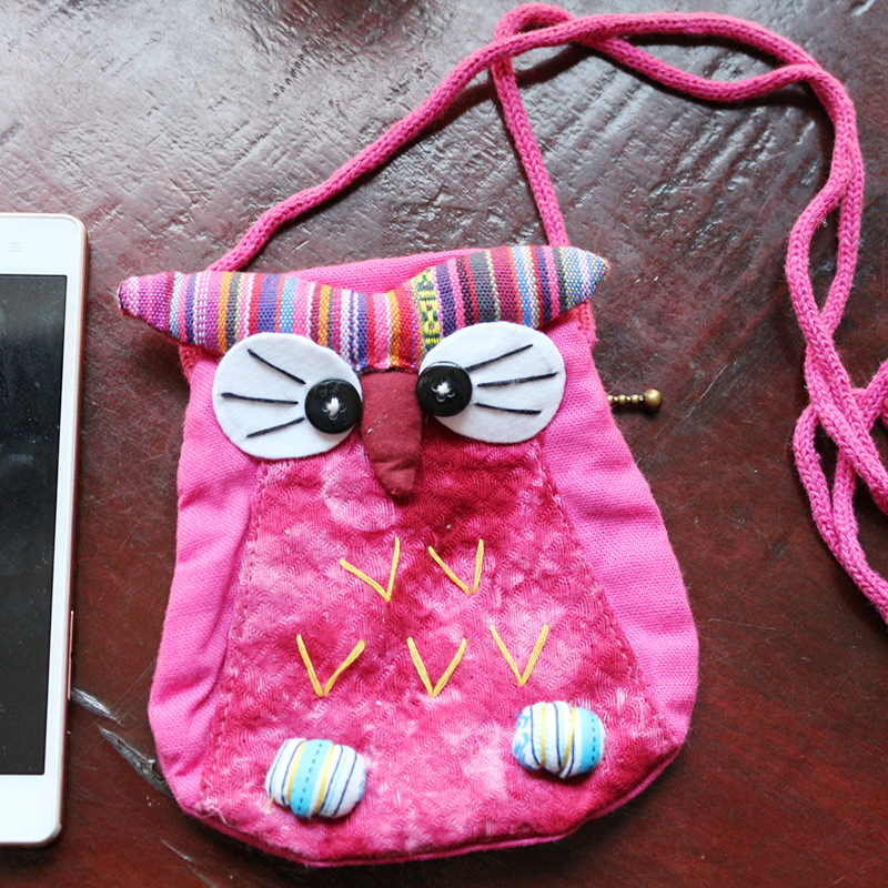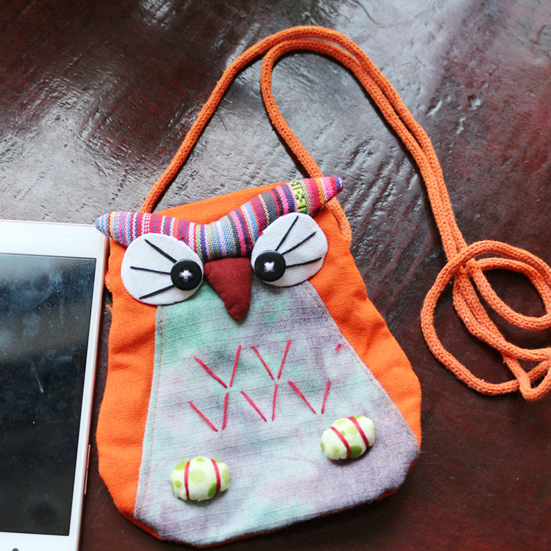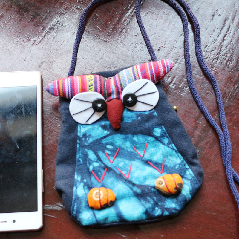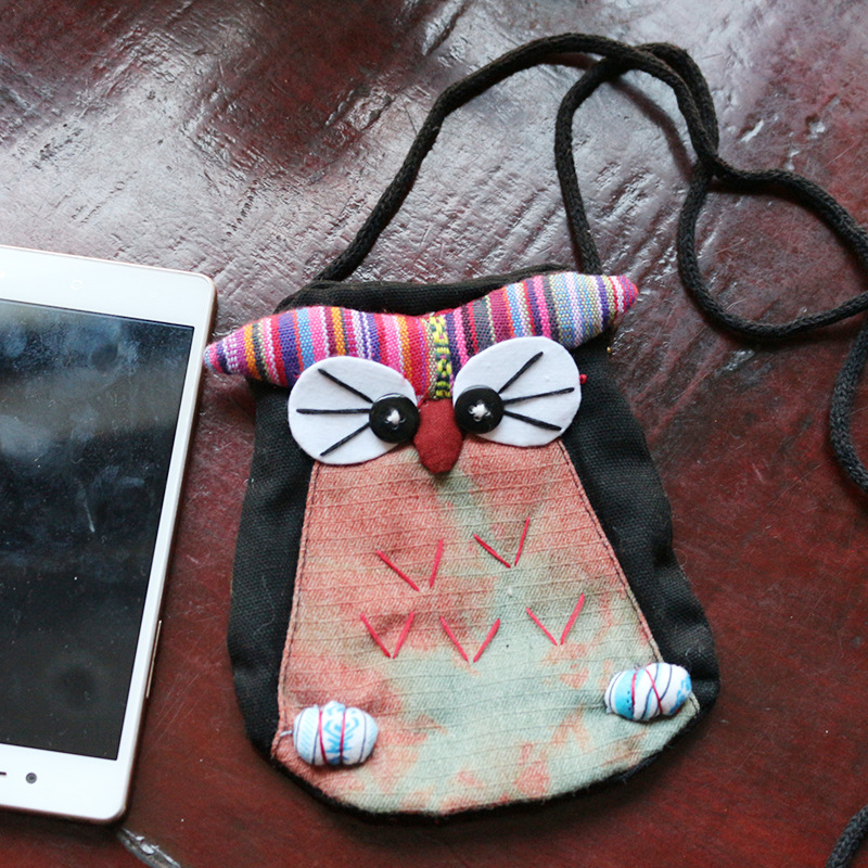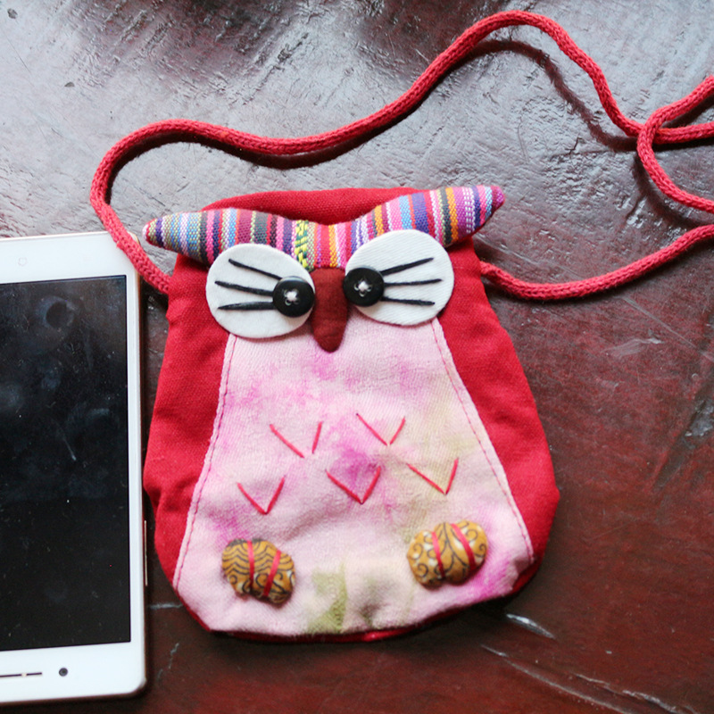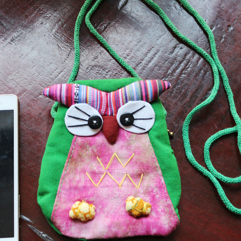 긴 벨트 작은 올빼미 숄더백 여성의 에스닉 스타일 개인화 된 작은 동전 지갑 수제 자수 동물 작은 가방
