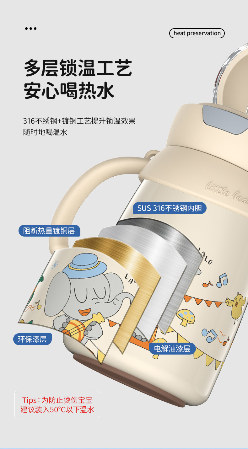 새로운 어린이 보온병 컵 316 식품 등급 스테인레스 스틸 아기 밀짚 컵 백화점 선물 워터 컵 도매