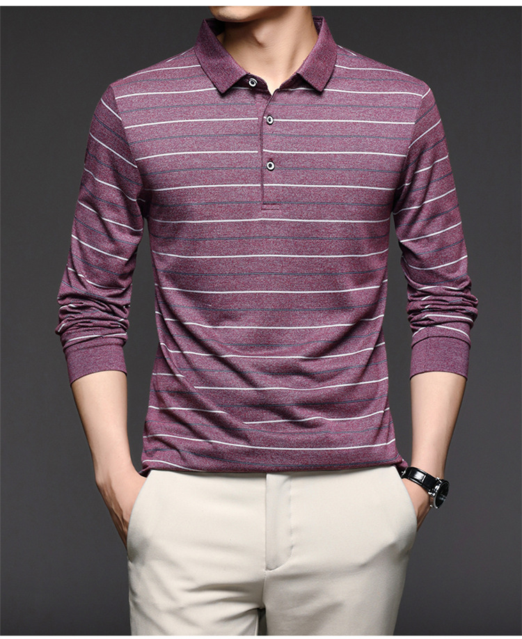 2021 봄과 가을 중년 긴팔 티셔츠 남성용 폴로 셔츠 라펠 스트라이프 캐주얼 아빠 베이스 셔츠 한국 스타일스토어 가기
