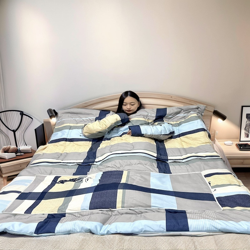다용도 소매 달린 베개, 휴대폰 사용 가능, 탈부착 가능한 어린이용 발차기 방지 이불, 사무실 낮잠용 부드러운 이불스토어 가기