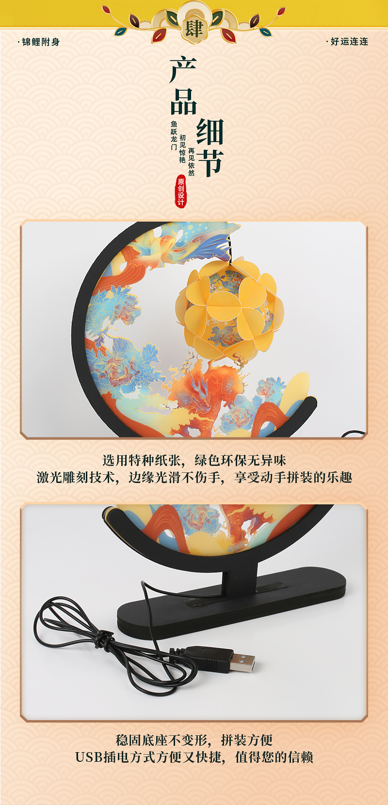 자금성 기념품, 중국풍 수제 DIY 침대 옆 장식품, 데코레이션 테이블 램프, 종이 조각 램프, 야간 조명, 중국풍 디자인스토어 가기