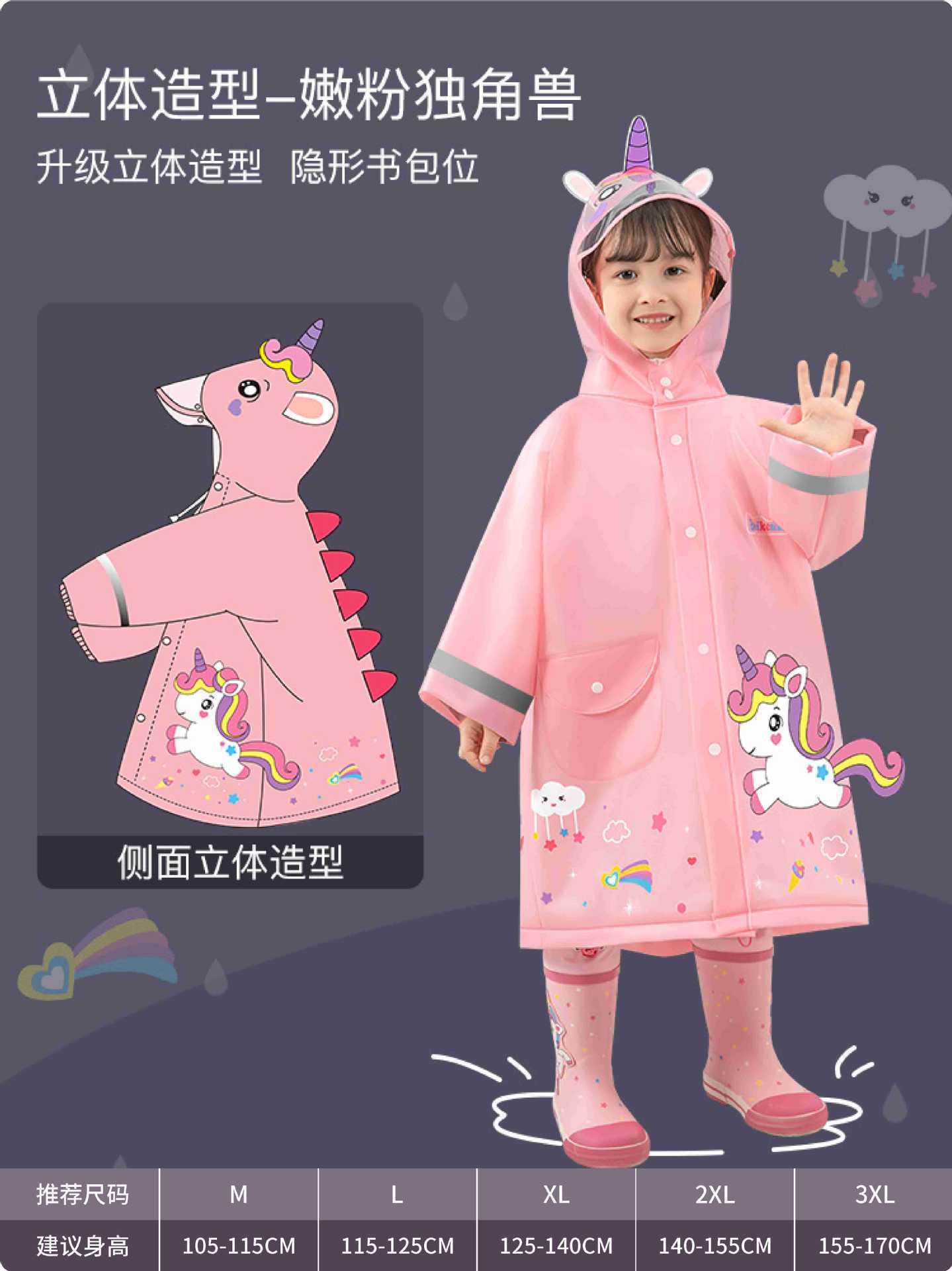 초등학생을위한 책가방이 달린 어린이 비옷 EVA 소년과 소녀를위한 대형 모자 챙 초대형 두꺼운 판초 코트 레인 게이지스토어 가기