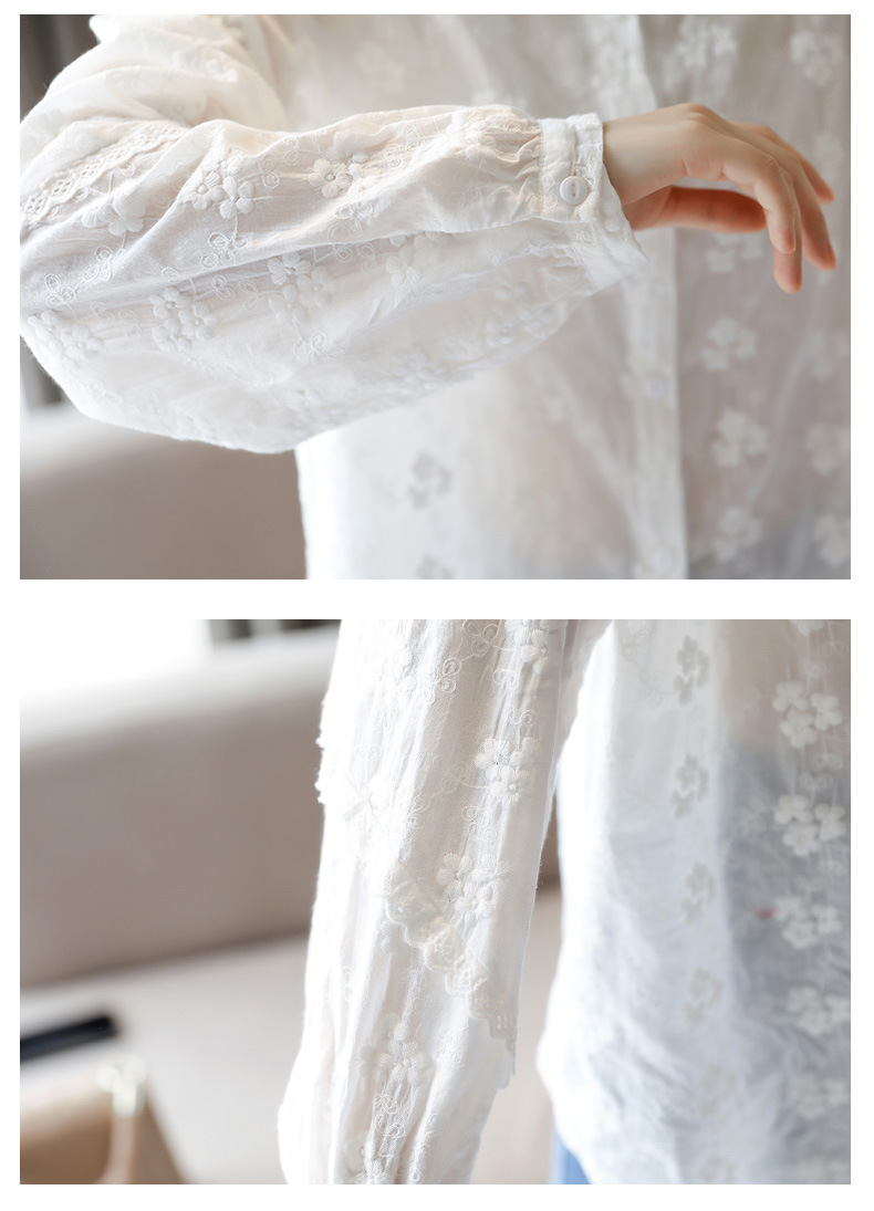 면 누에고치 레이스 칼라 화이트 셔츠 여성용 긴팔 2026 봄 가을 셔츠 시크하고 아름다운 기질을 지닌 순면 상의