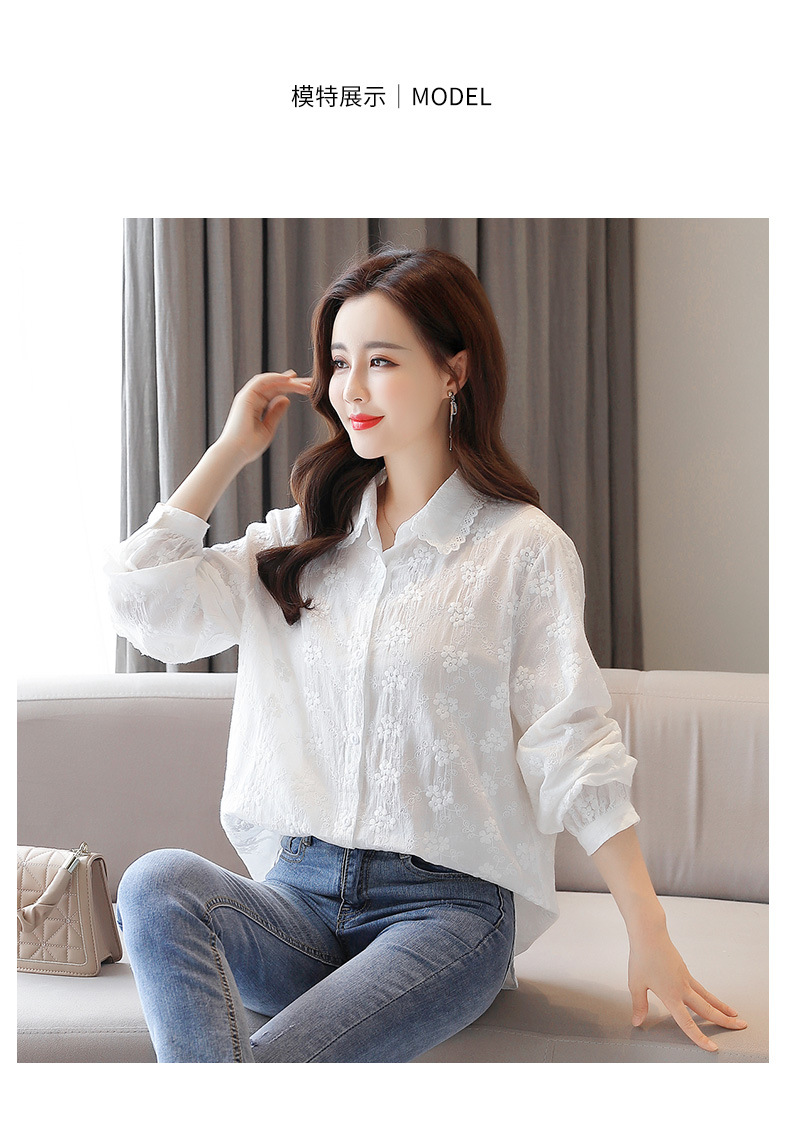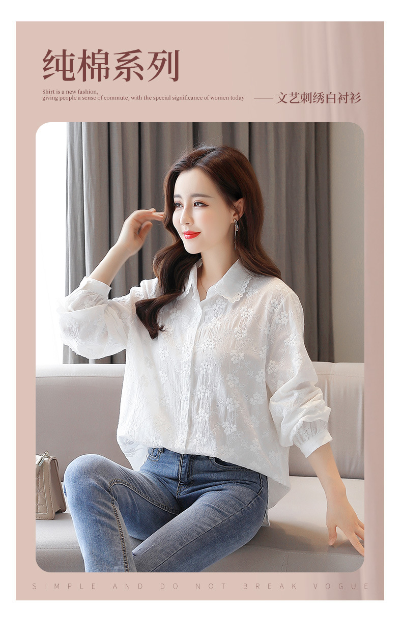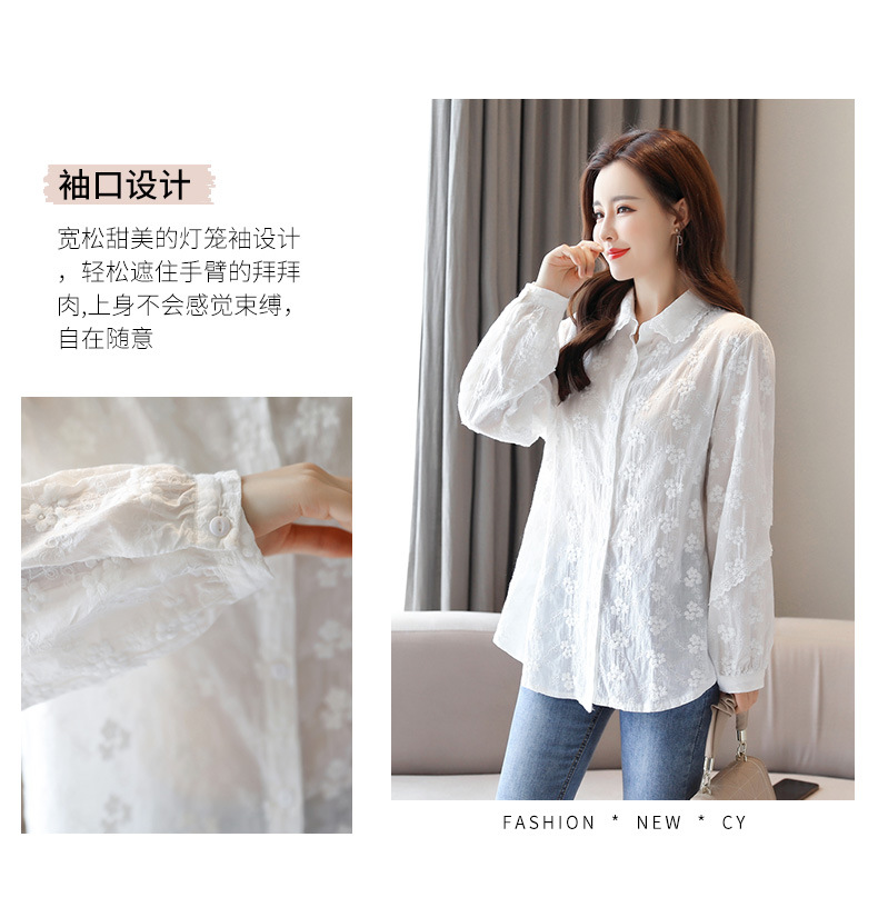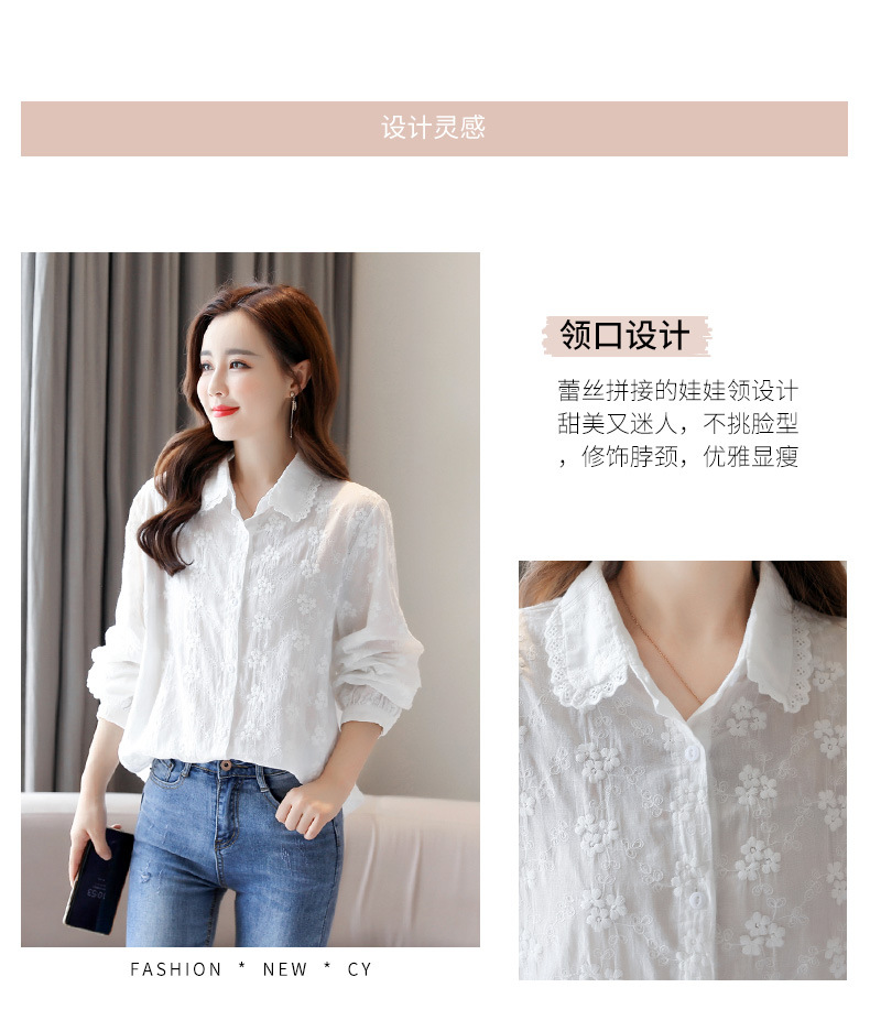 면 누에고치 레이스 칼라 화이트 셔츠 여성용 긴팔 2026 봄 가을 셔츠 시크하고 아름다운 기질을 지닌 순면 상의스토어 가기