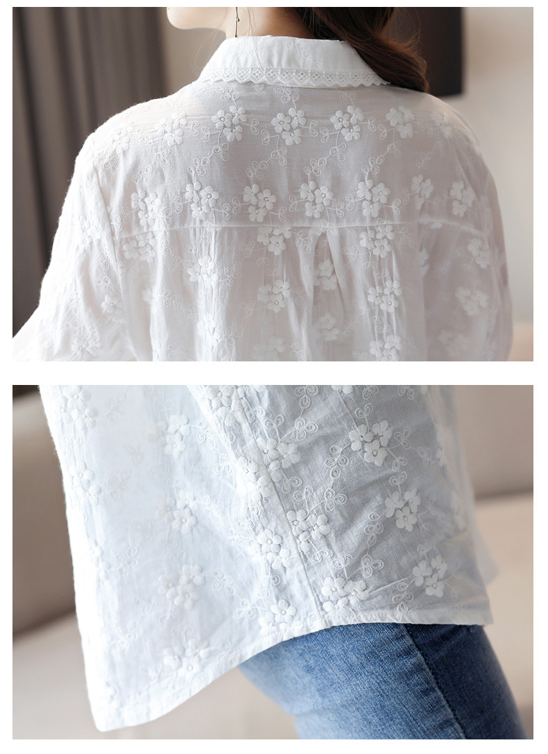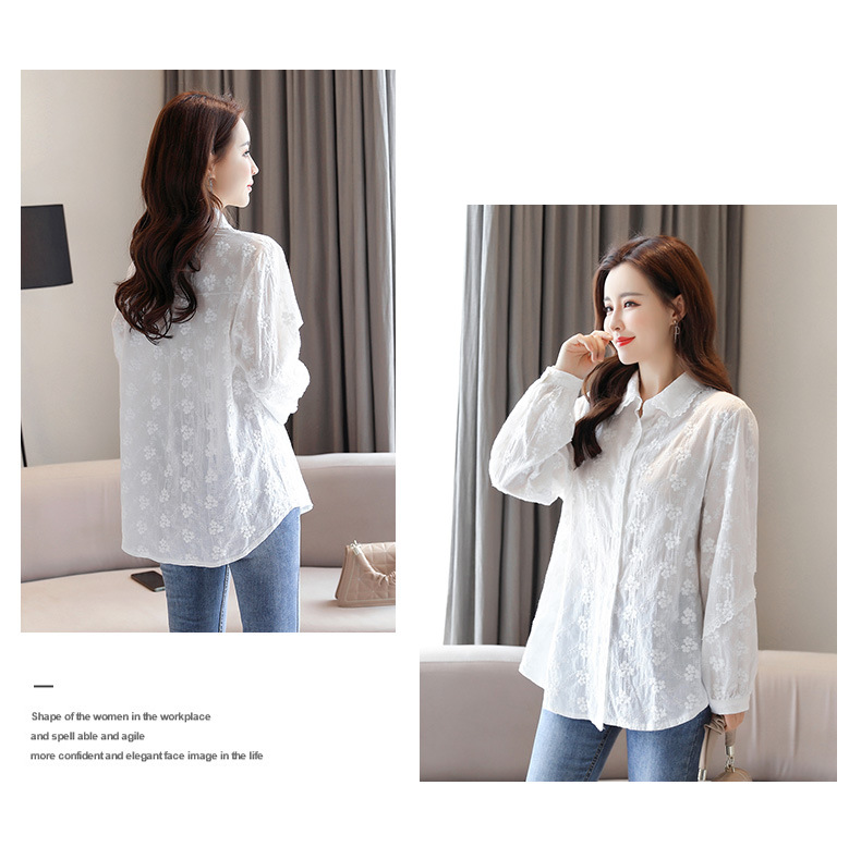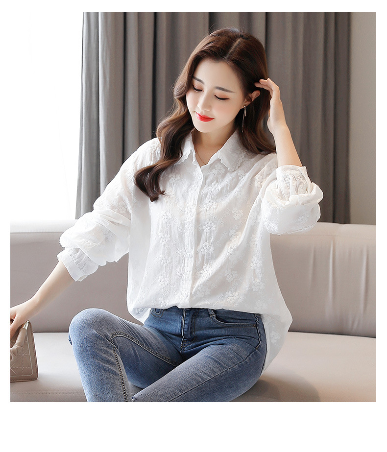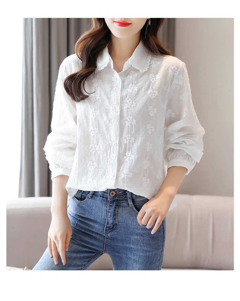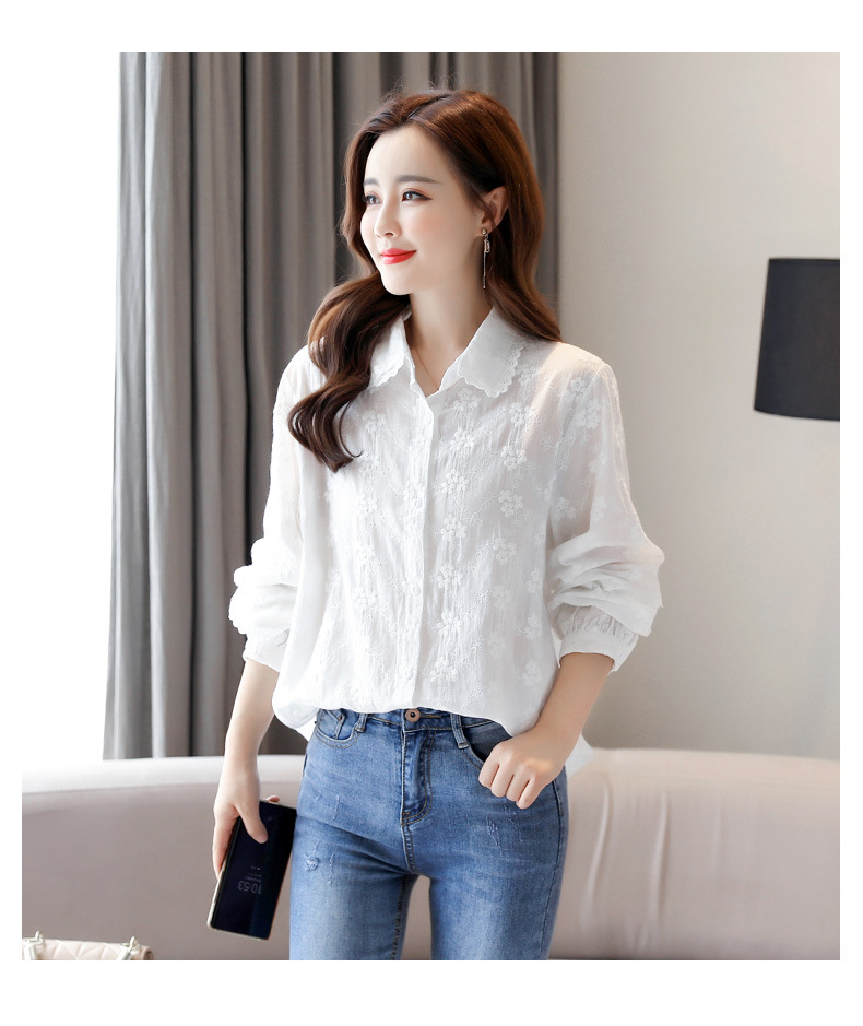 면 누에고치 레이스 칼라 화이트 셔츠 여성용 긴팔 2026 봄 가을 셔츠 시크하고 아름다운 기질을 지닌 순면 상의스토어 가기