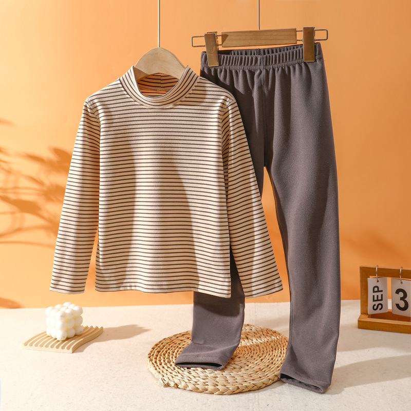 어린이용 기모 내의 세트, 가을 겨울용 줄무늬 아기 잠옷, 남아용 보온 내의, 두꺼운 독일산 기모스토어 가기