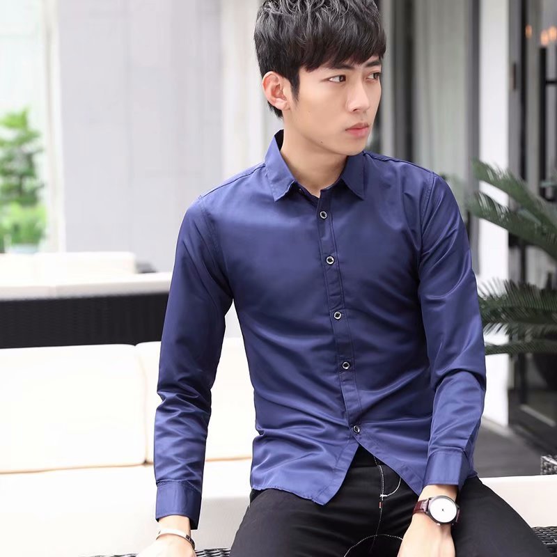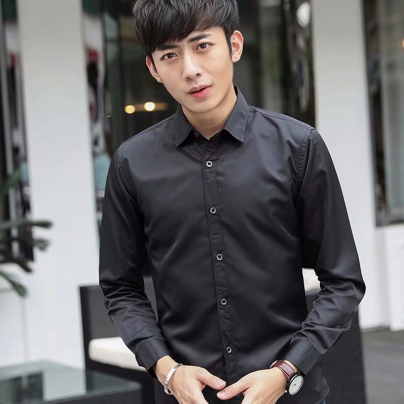 흰색 셔츠 남자의 긴팔 슬림 핏 다리미 없는 단색 전문 비즈니스 원피스 작업 흰색 남자의 세트 셔츠스토어 가기