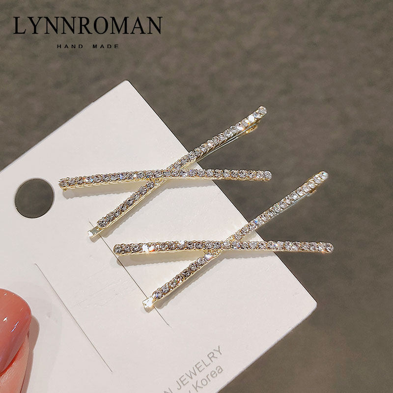 한국식 우아한 헤어 클립 심플 크로스 한 글자 클립 라인 석 앞머리 클립 사이드 클립 소녀의 탑 클립 인터넷 연예인 여성용 헤어 클립