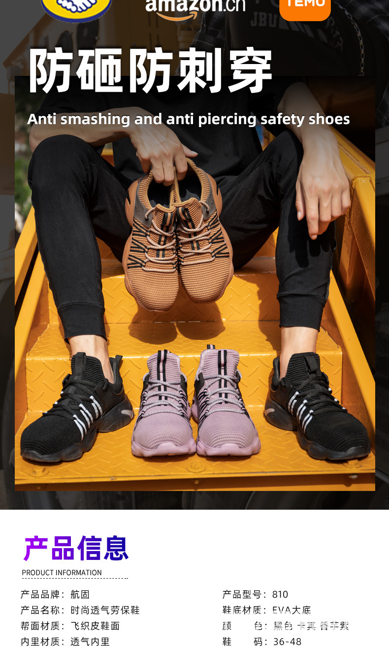 통기성 안전 신발 비행 짠 경량 여성 노동 보호 신발 스매싱 방지 방지 방지 보호 작업 신발 안전 신발스토어 가기