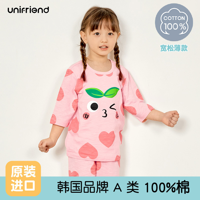 Unifriend 봄과 여름 아이들의 가정 옷 세트 속옷 세트 만화 한국 아이들의 7 점 느슨한 판