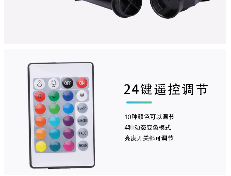 • 전원 공급 장치 1개 및 램프 홀더 1개 - 3W - 램프 홀더당 램프 비드 36개 - 24키 리모콘