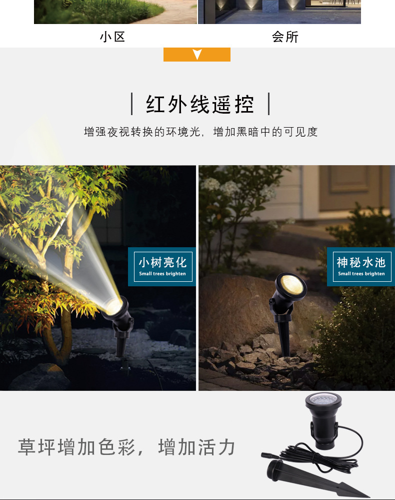 야외 방수 플러그인 트리 라이트, LED 공원 트리 라이트, 조경등, 도매, 7색 변색, 리모컨스토어 가기