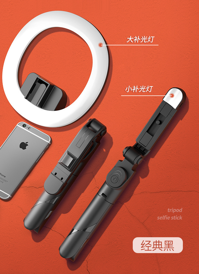 产品配置:三脚架+自拍杆+蓝牙遥控+补光灯