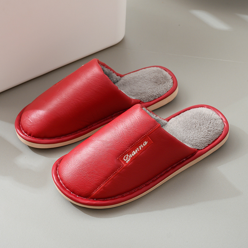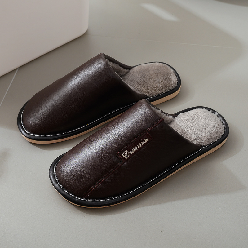 면 슬리퍼 커플 새로운 남성과 여성의 실내 바닥 미끄럼 방지 따뜻한 슬리퍼 가정 가을과 겨울 가죽 도매스토어 가기