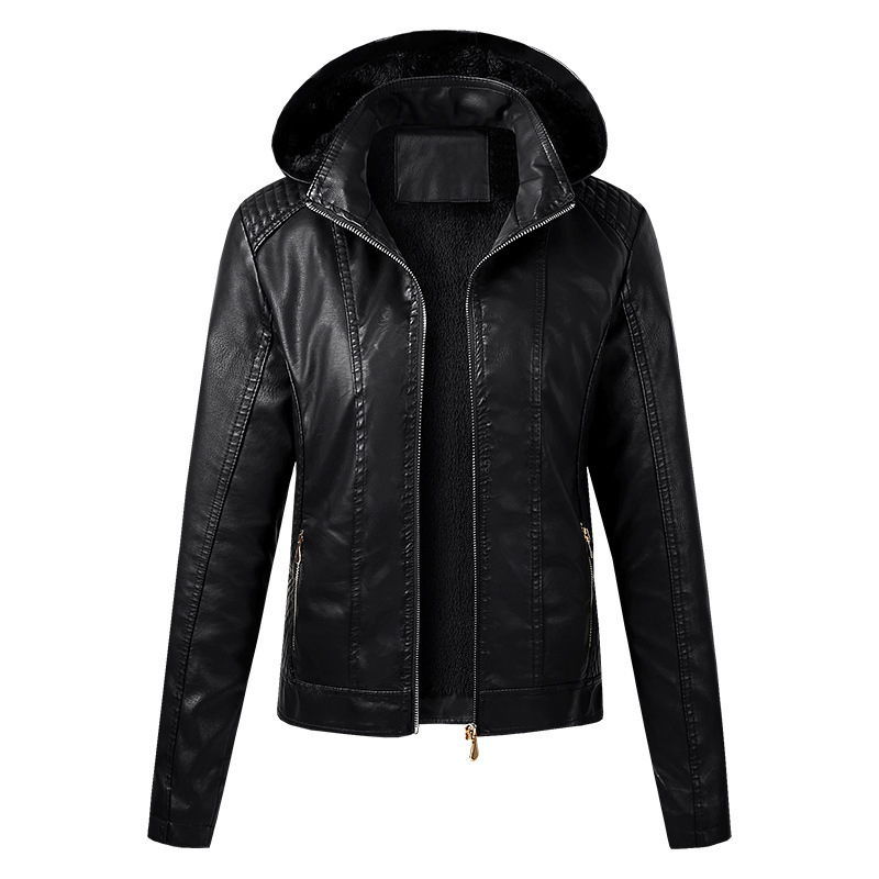 크로스 국경 새로운 가을과 겨울 여성 의류 기모 뜨거운 판매 패션 하이 엔드 여성 가죽 자켓 여성 후드 지퍼 가죽 재고스토어 가기
