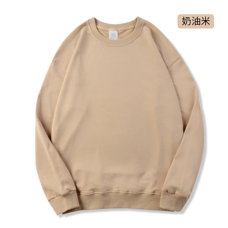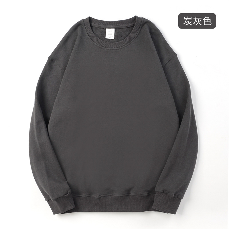 350g 단색 일본 무거워 남성 패션 브랜드 느슨한 면 크루 넥 두꺼운 어깨 드롭 남성 캐주얼 긴 소매스토어 가기