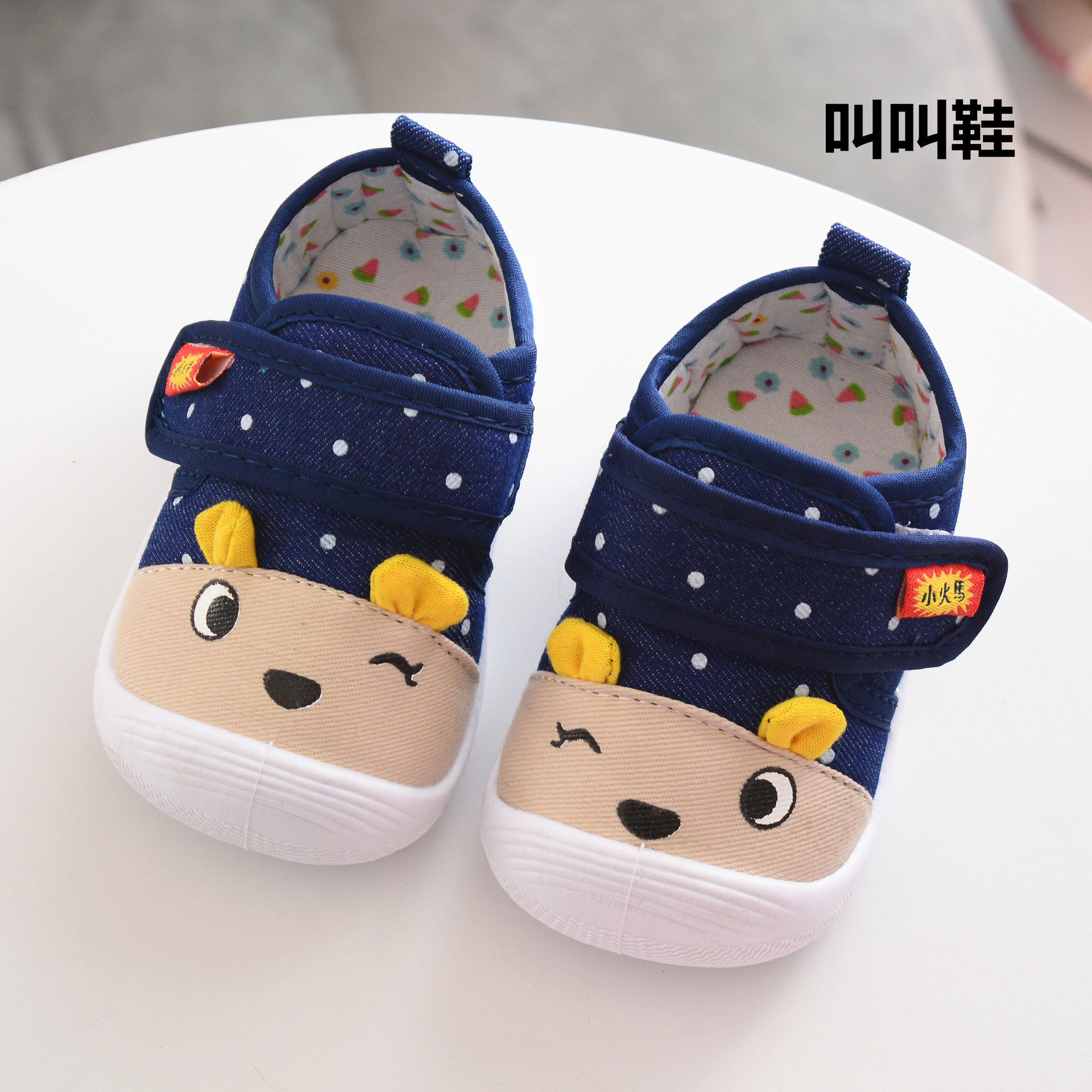 봄과 가을 국경을 넘는 아기 신발 부드러운 바닥 안티 킥 기능 신발 주사는 0-3 세 아기 유아 호출 신발을 머리를 대신하여 울립니다.