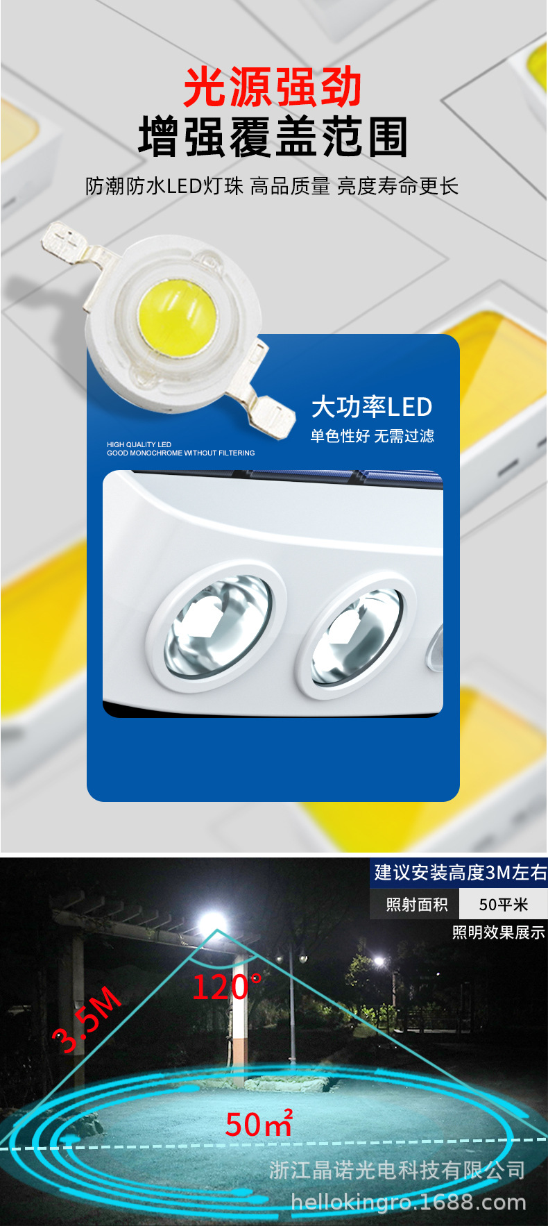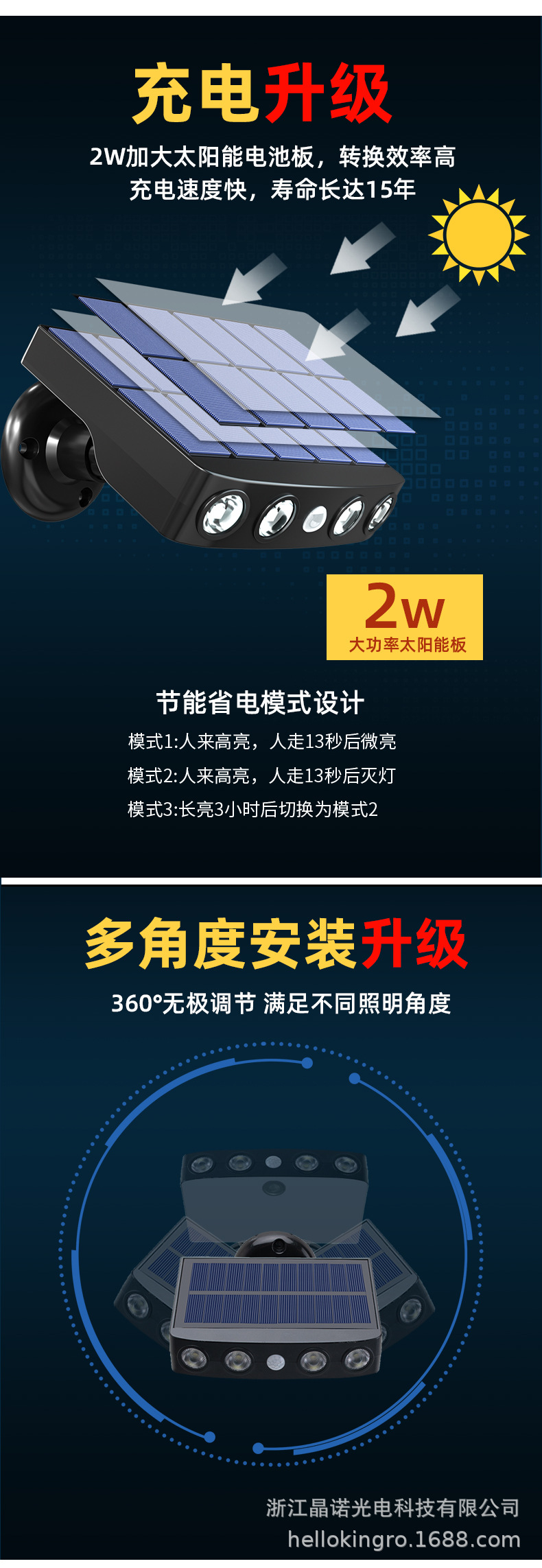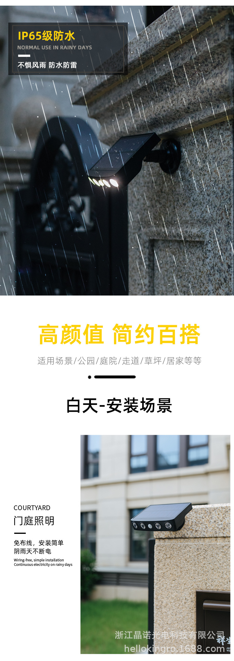 새로운 태양광 조명 야외 홈 안뜰 잔디 정원 벽 조명 농촌 야외 조명 유도 모니터링 가로등