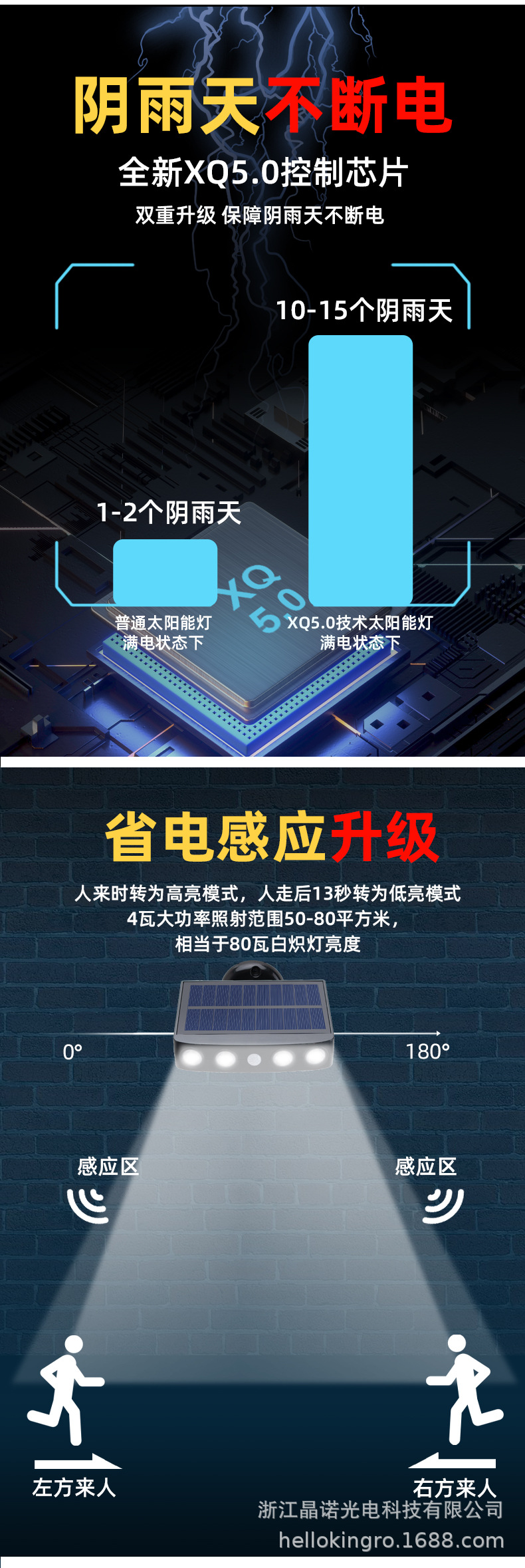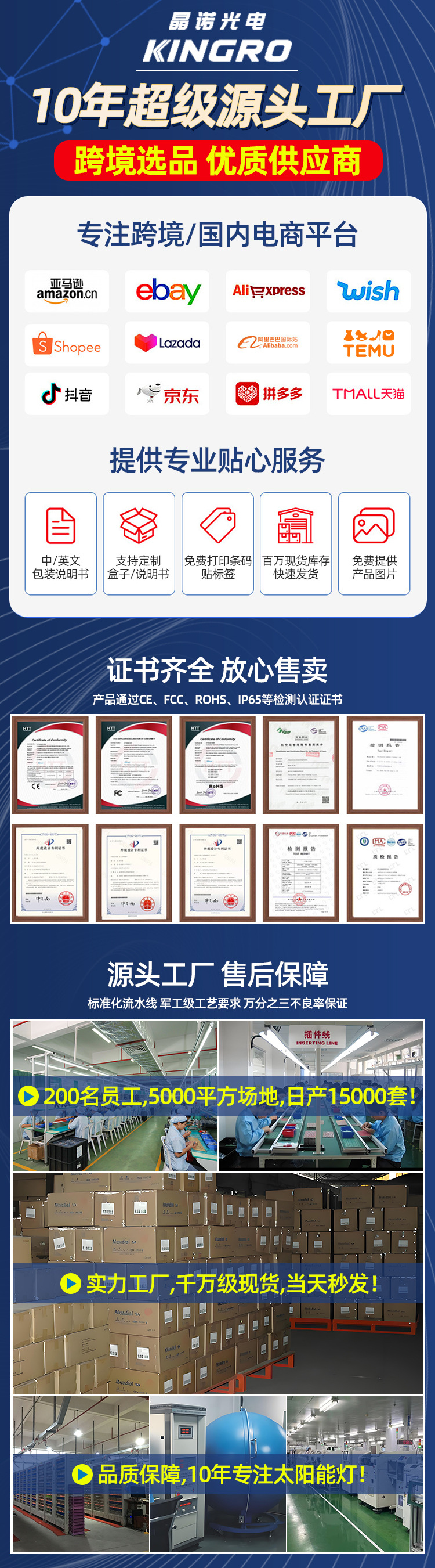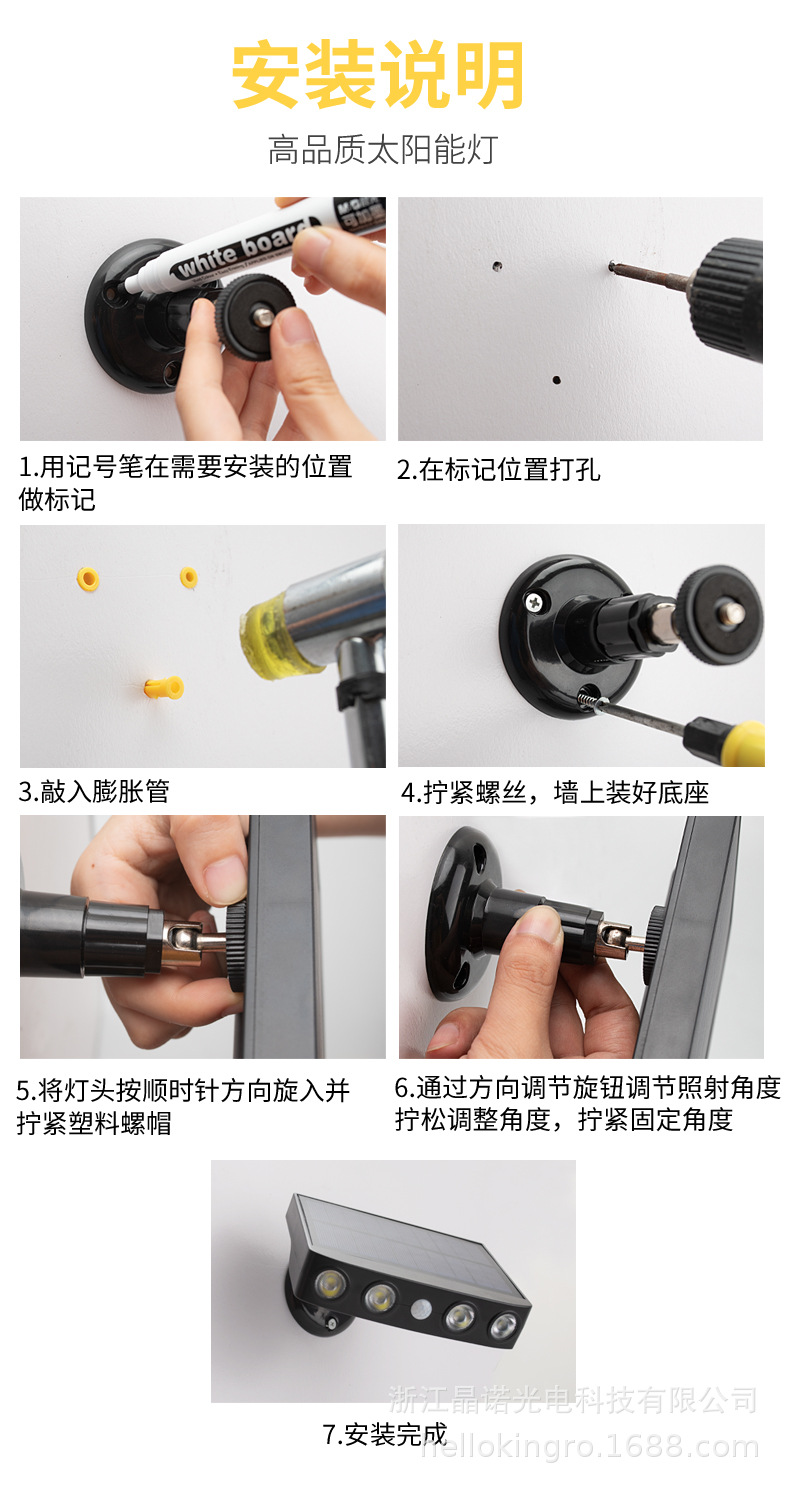새로운 태양광 조명 야외 홈 안뜰 잔디 정원 벽 조명 농촌 야외 조명 유도 모니터링 가로등