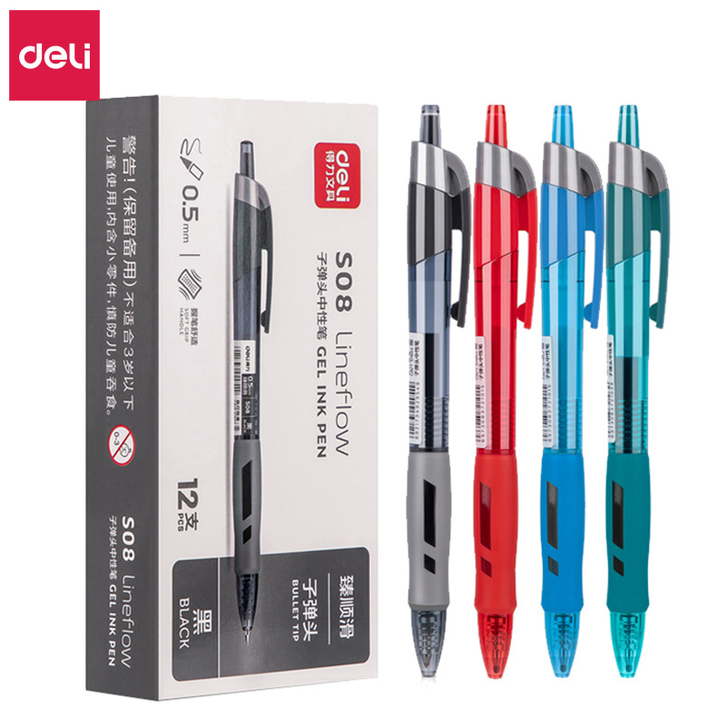 델리 s08 푸시 젤 펜 0.5mm 블루 블랙 총알 플라스틱 프레스 펜 학생 사무실 문구 물 펜