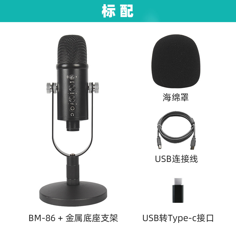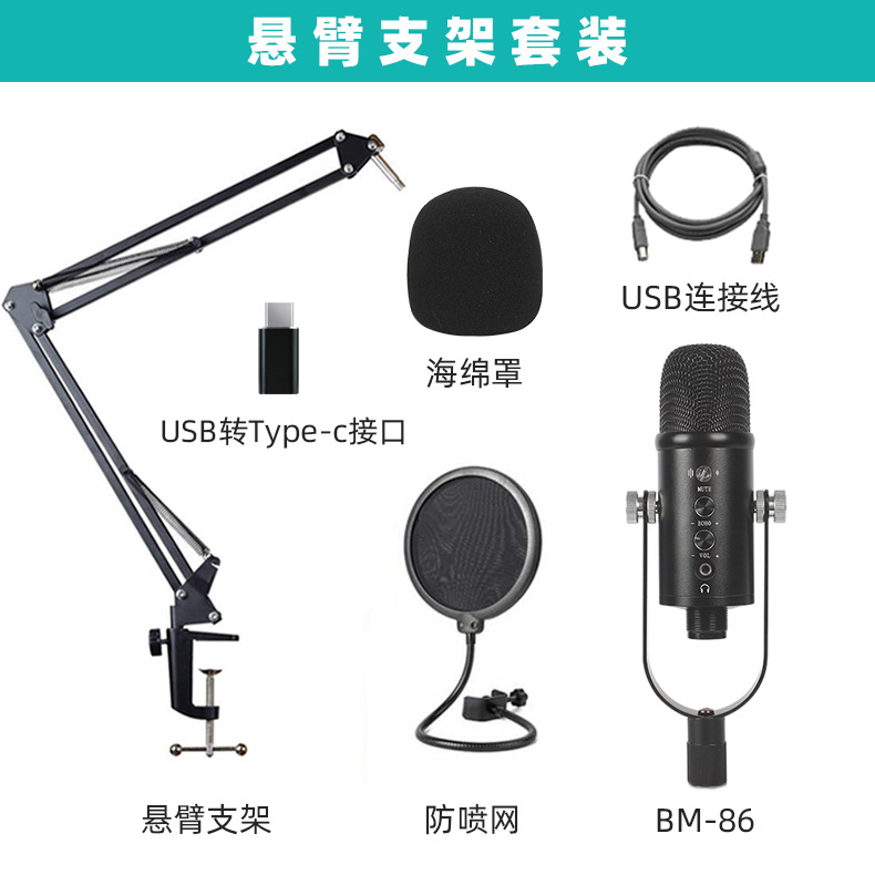크로스 보더 USB 정전식 마이크 음성 녹음 소음 감소 대형 다이어프램 컴퓨터 마이크 마이크 라이브 방송 장비 세트스토어 가기