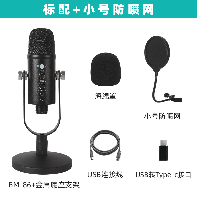 크로스 보더 USB 정전식 마이크 음성 녹음 소음 감소 대형 다이어프램 컴퓨터 마이크 마이크 라이브 방송 장비 세트