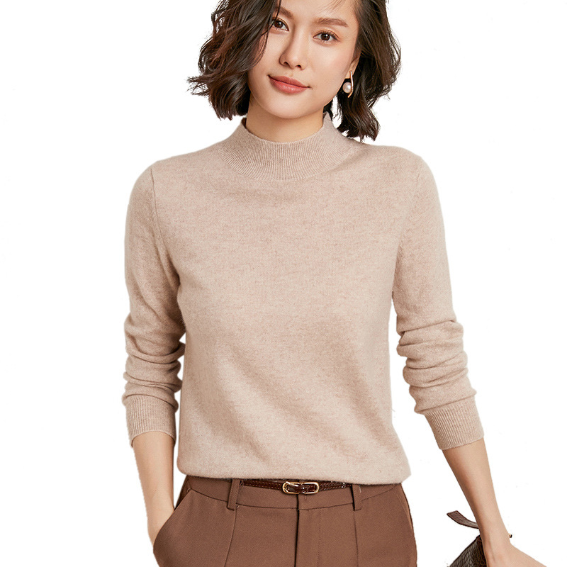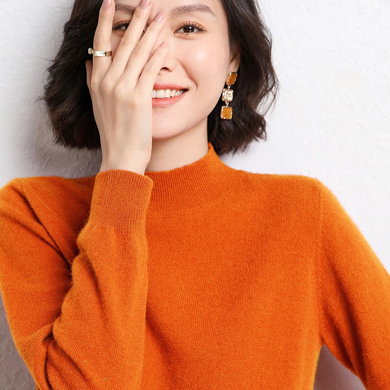 가을과 겨울 새로운 하프 하이 칼라 베이스 셔츠 여성용 올매치 슬림핏 니트 두꺼운 스웨터 겉옷 한국식 긴팔 미들 칼라스토어 가기