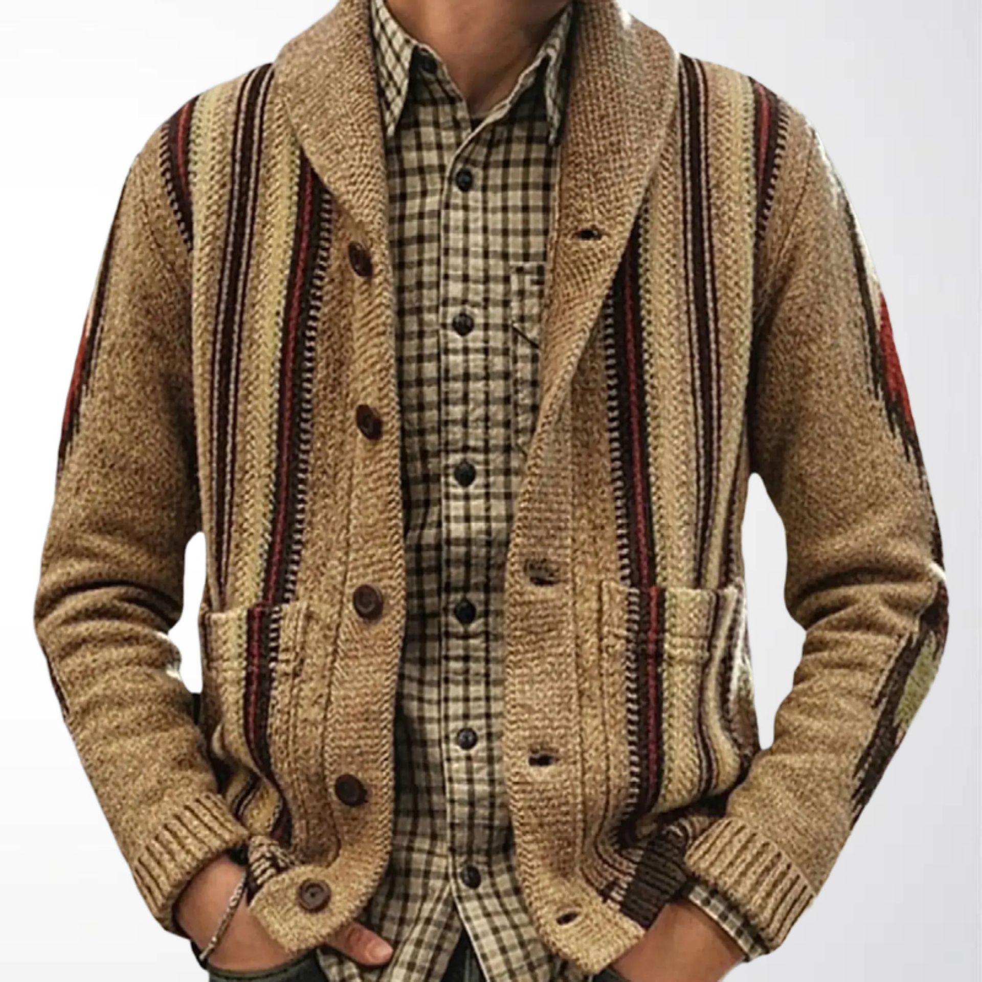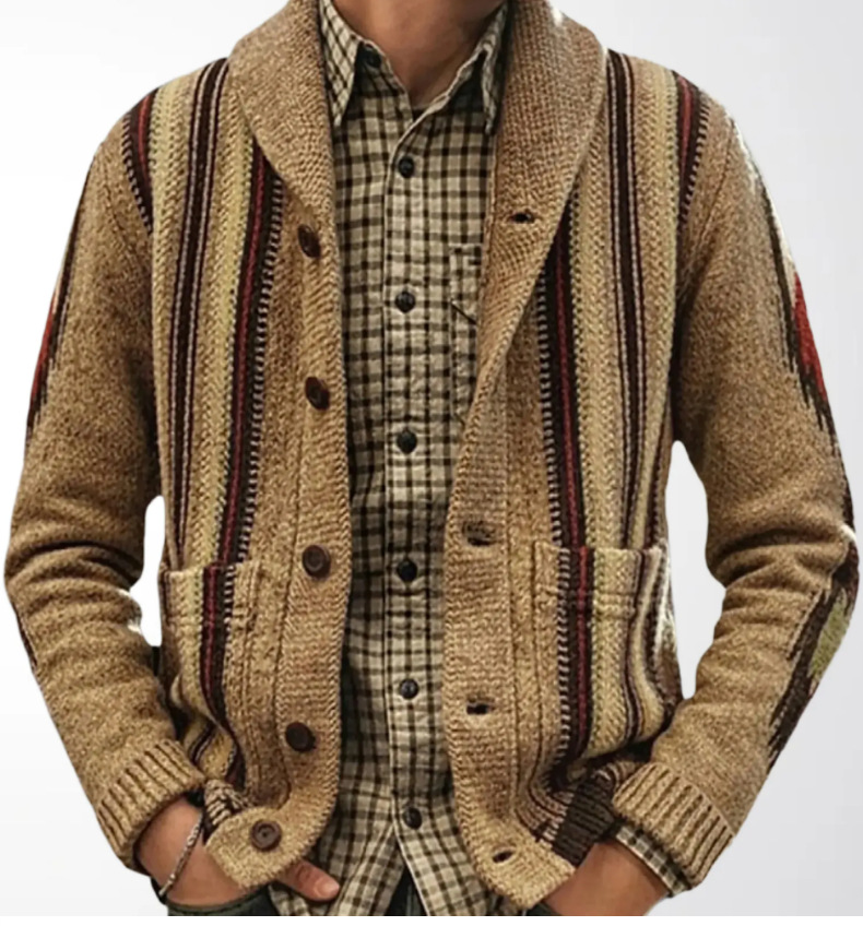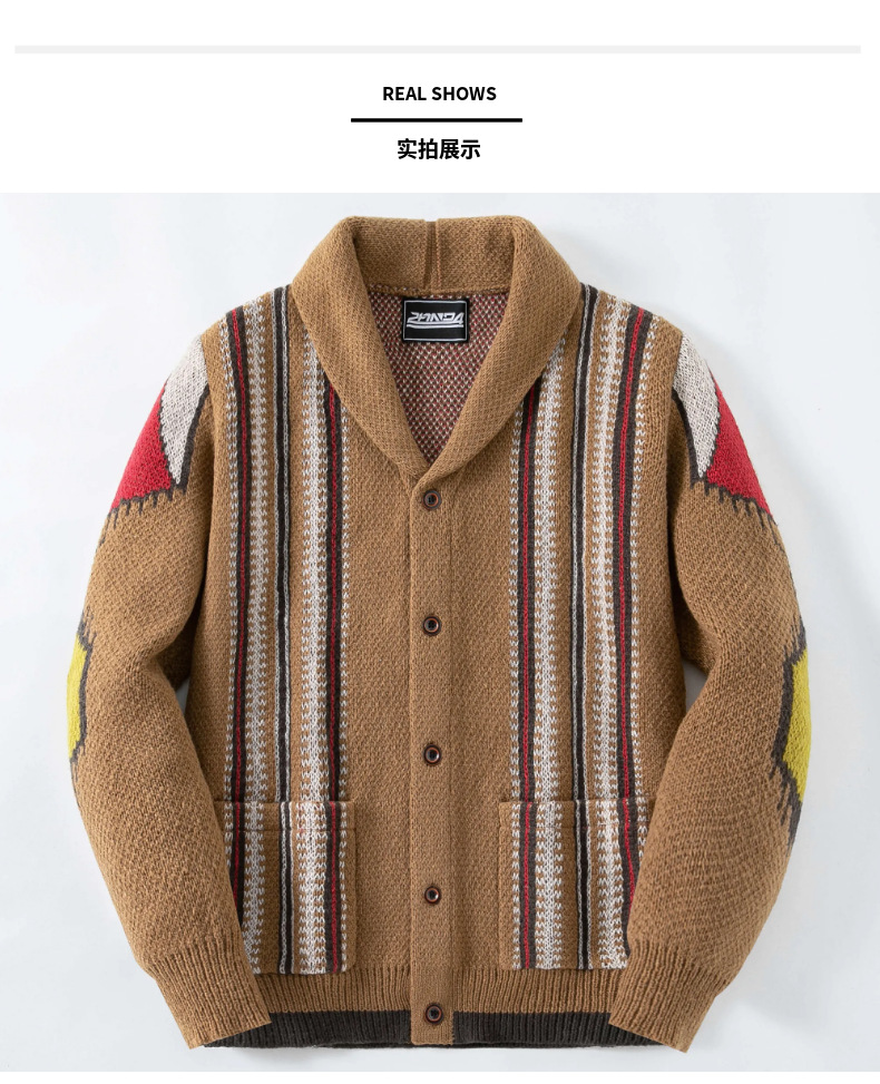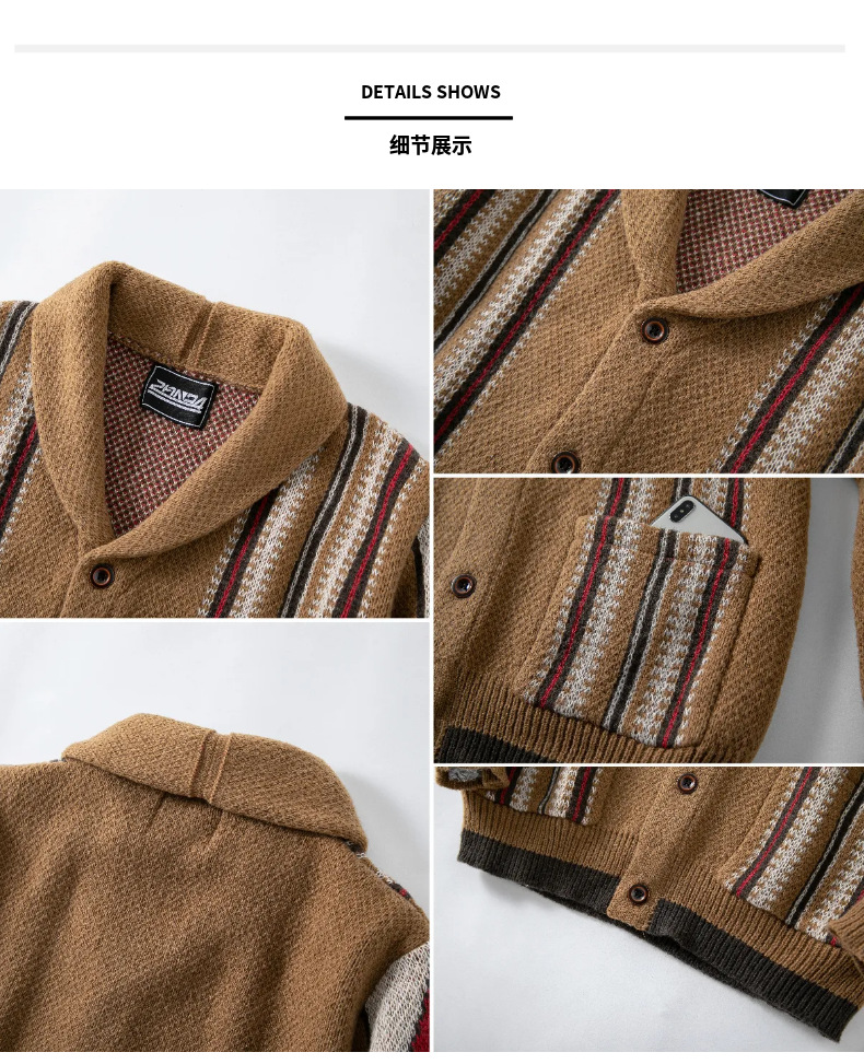 남성용 가디건 스웨터 가을 겨울 레트로 스트라이프 자카드 니트 두꺼운 코트 해외 남성복 공급원산지 SY0009