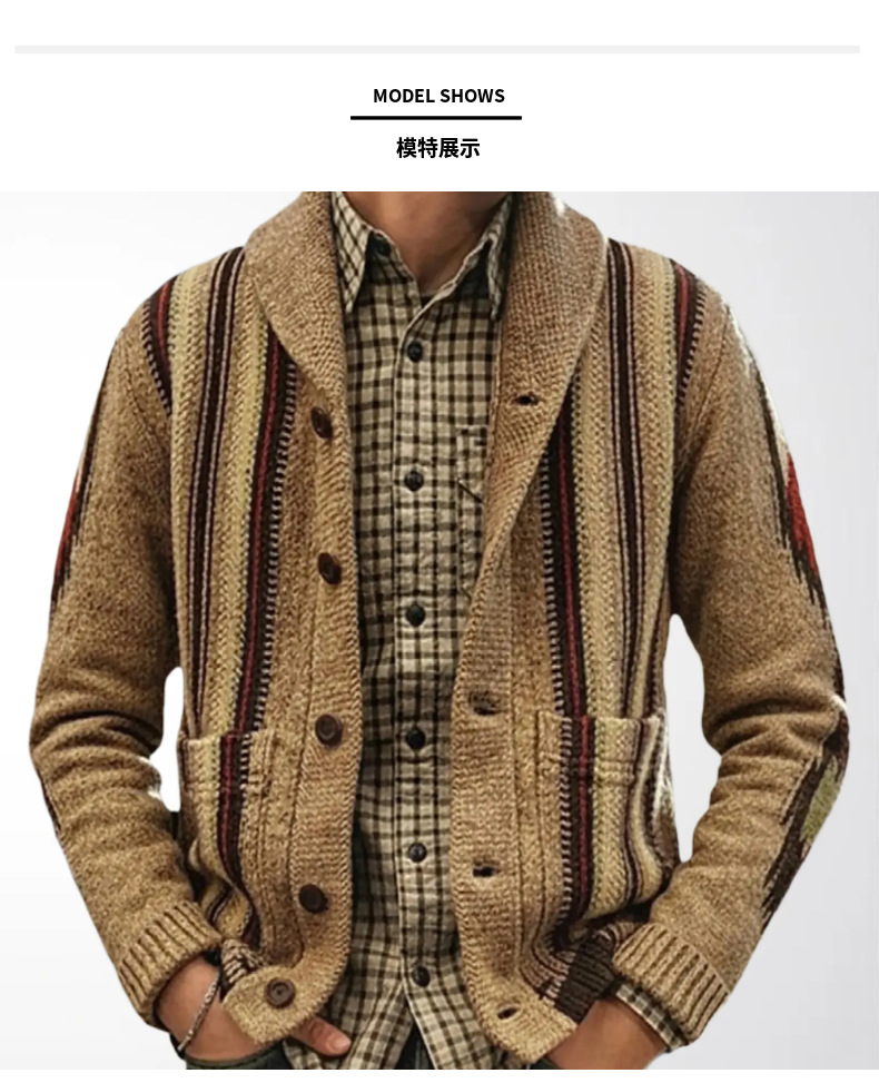 남성용 가디건 스웨터 가을 겨울 레트로 스트라이프 자카드 니트 두꺼운 코트 해외 남성복 공급원산지 SY0009스토어 가기